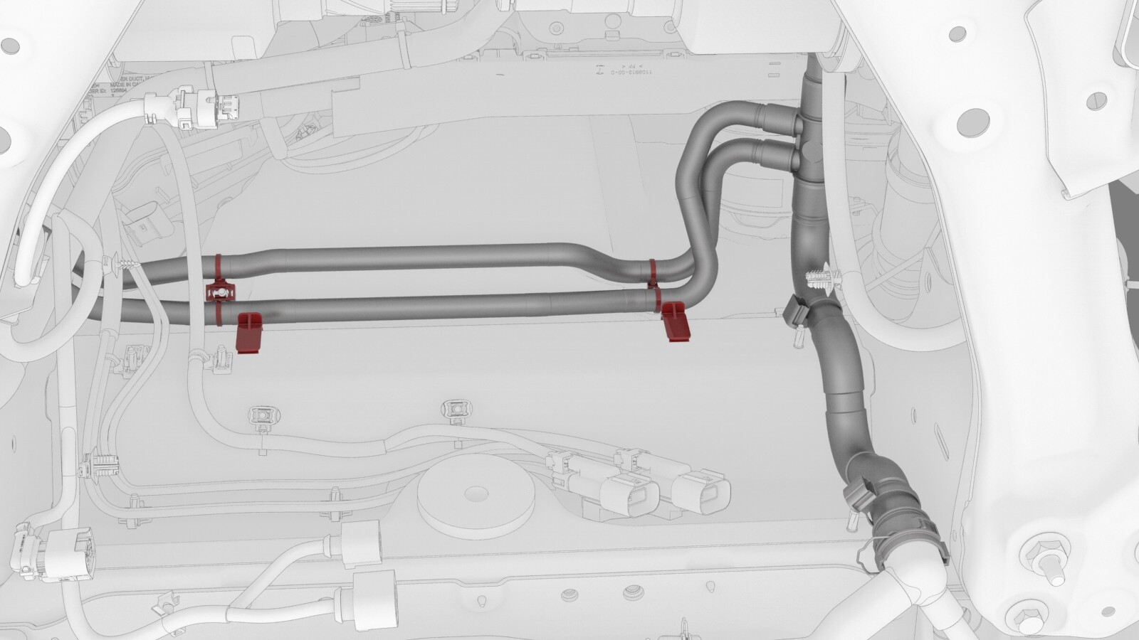 attaches the 12V battery vent hose to the chiller to car computer and HV
