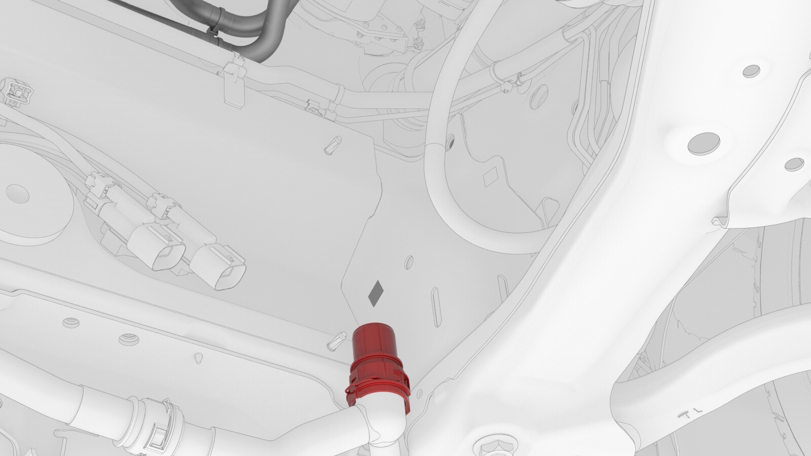 - Fully raise the vehicle, and then position a coolant drain container underneath the LH front side of the HV battery.