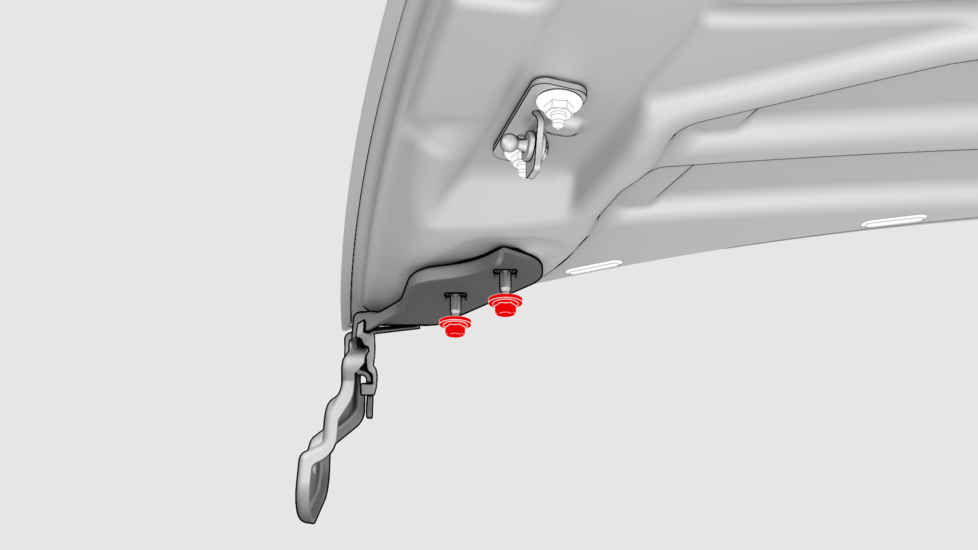 - Install the clips that attach the LH and RH hood gas struts to the hood assembly.