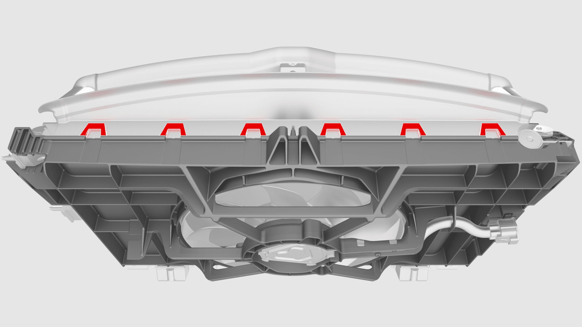 assembly onto the condenser fan module, and then secure the lower clips that attach the