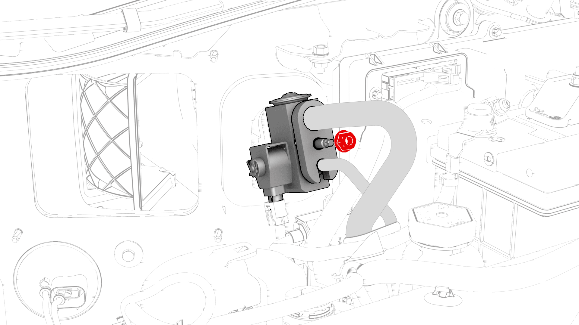 Remove the bolt that attaches the liquid line to the EXV chiller assembly, and remove the line from the EXV.22 Nm (16.2 lbs-ft)