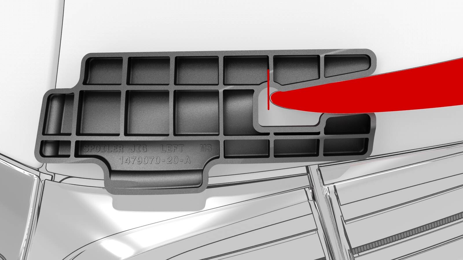 NoteThe spoiler jigs are used to center and align the spoiler and are removed from the vehicle prior to installation.