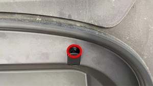 Bolt that attaches the LH bag holder hook to the frunk assembly |