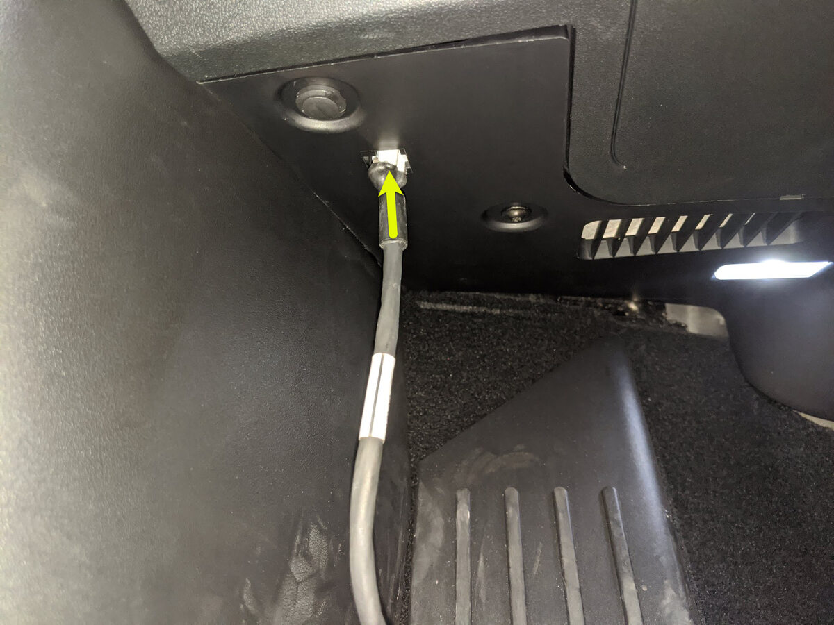 NoteVehicle connection is integrated into drivers footwell cover, Navigate to https://toolbox.teslamotors.com and establish connection to vehicle, Select connection status icon at top right corner then select connect locally, Icon will turn green when connected, Successful connection will automatically unlock vehicle gateway and place UI in Service Mode Plus, If RJ45 ethernet diagnostic connector present connect directly from laptop using an RJ45 Ethernet cable, For local connection issues with Toolbox 3 refer to https://toolbox.teslamotors.com/articles/43695