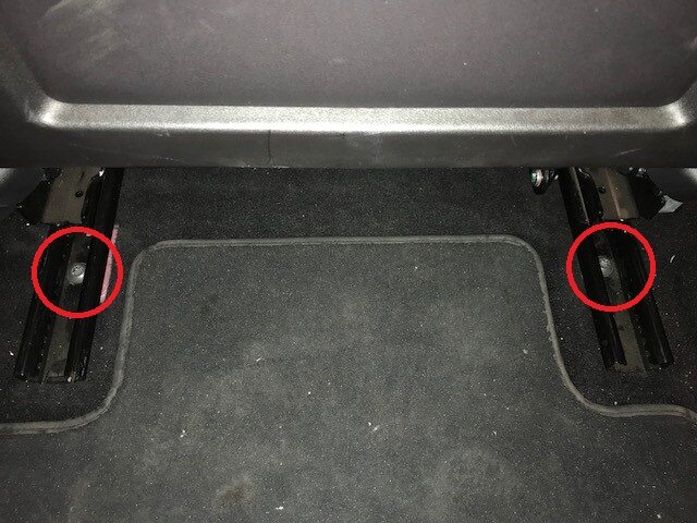 Note2x tabs, 2x connectors, Slide locking tabs to left of vehicle while lifting up seat benchNewer models have connectors on both sides of bench, Older models have 2x connectors on one side of bench