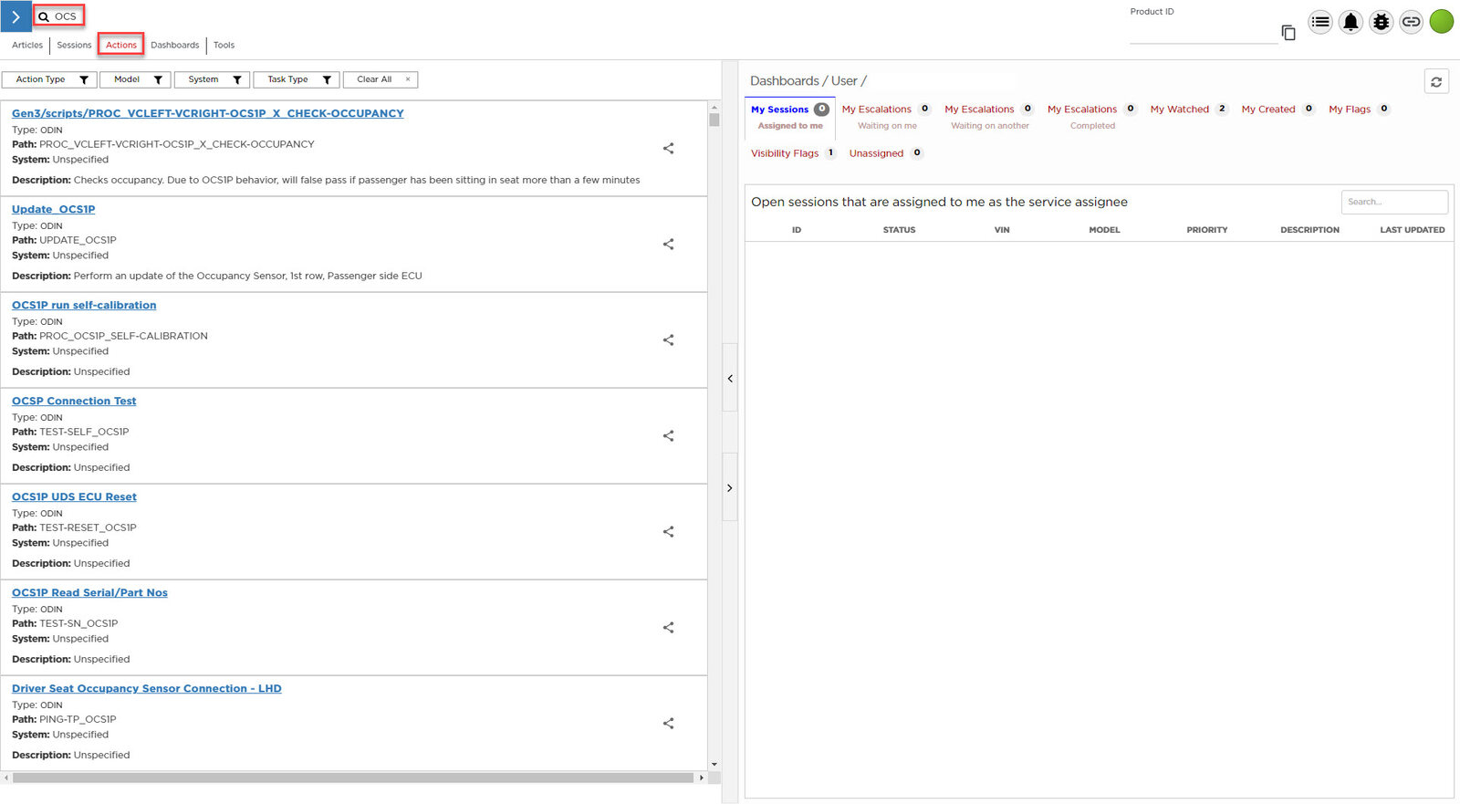 Select ‘Actions’ and search for ‘OCS’