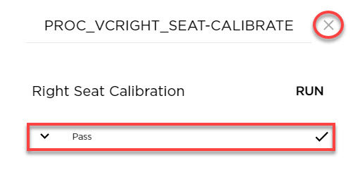 NoteVerify seat is clear from any tooling or objects prior to calibrationSelect ‘X’ at top right of window to close once complete, Routine is specific to NA region vehicles