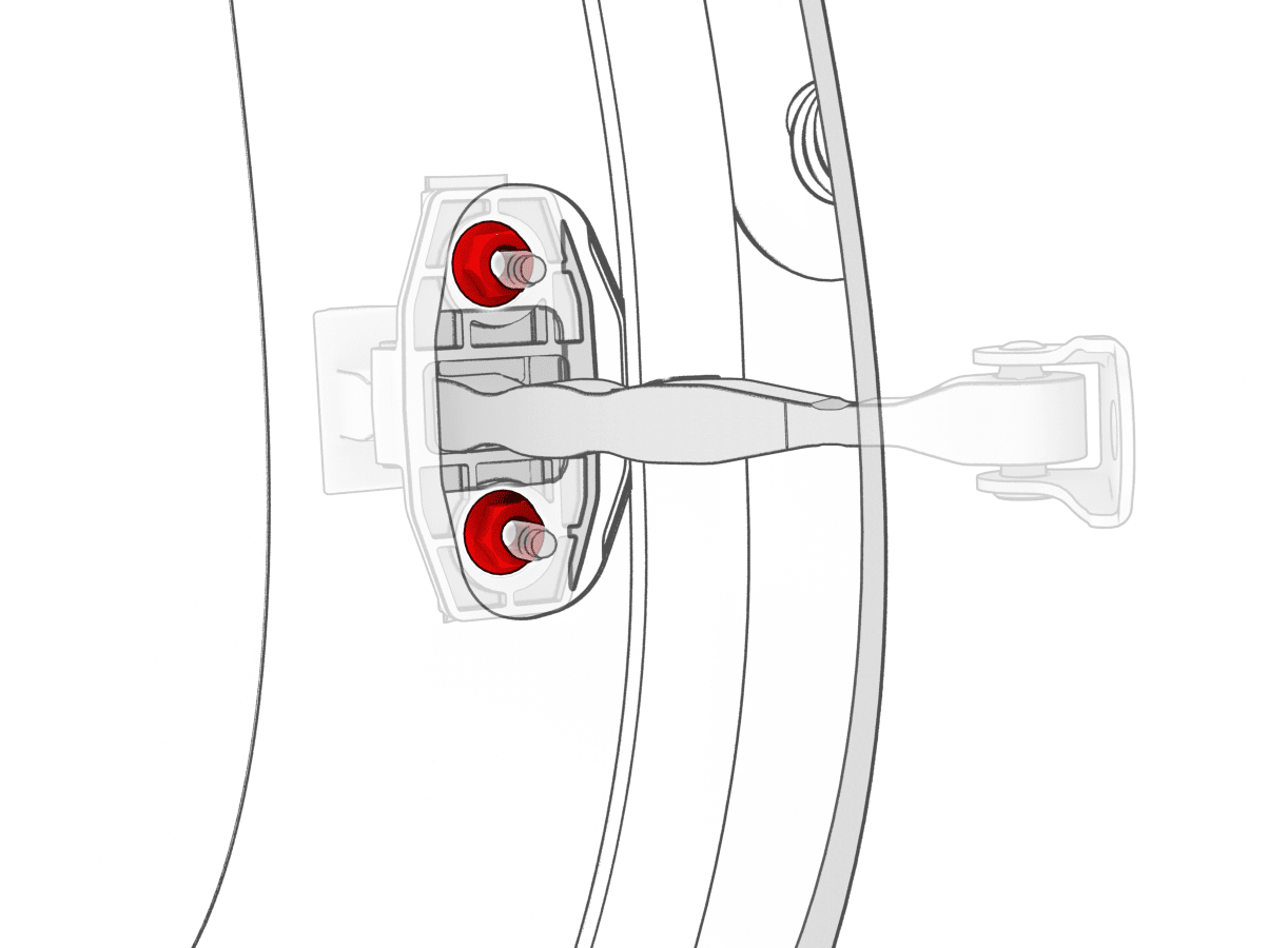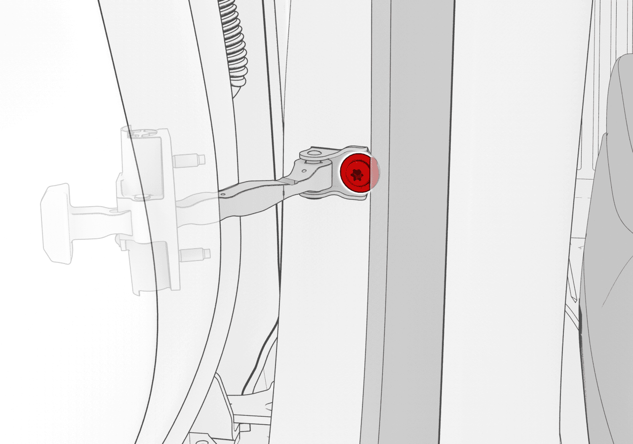 Using a 10 mm deep socket, remove the nuts (x2) that attach the check strap to the door.10 Nm (7.4 lbs-ft)
