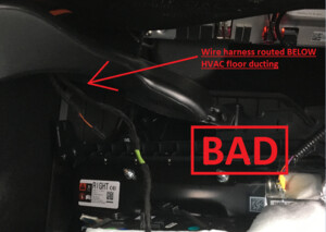 Note3x connectors, New puddle lamp harness routing prevent blocking movement of pawls, Make sure harness is routed properly above passenger footwell air duct before connecting