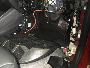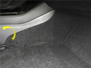 Note2x clips, Lift the center piece and pull the carpet back, Release seat harness from clips to allow the carpet to fold back more
