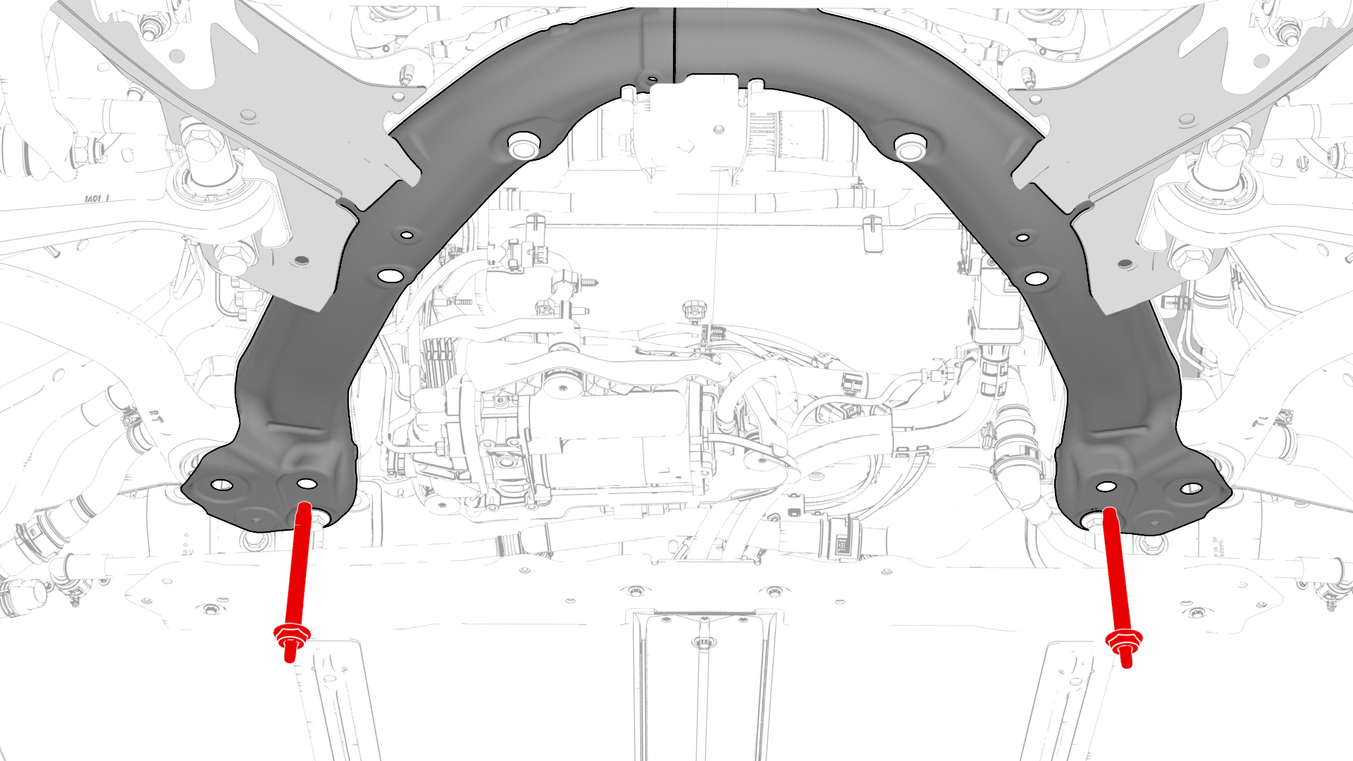 Remove and discard the larger bolts that attach the rear portion of the front subframe to the body.