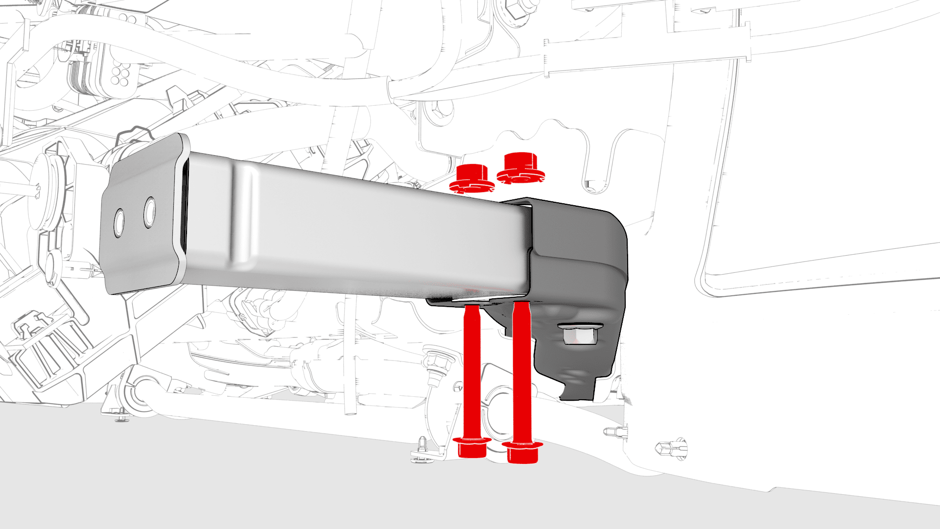 Figure 3. LH shown, RH similar - Hand-tighten the bolts that attach the front end carrier to the LH and RH front subframe crash can assemblies.