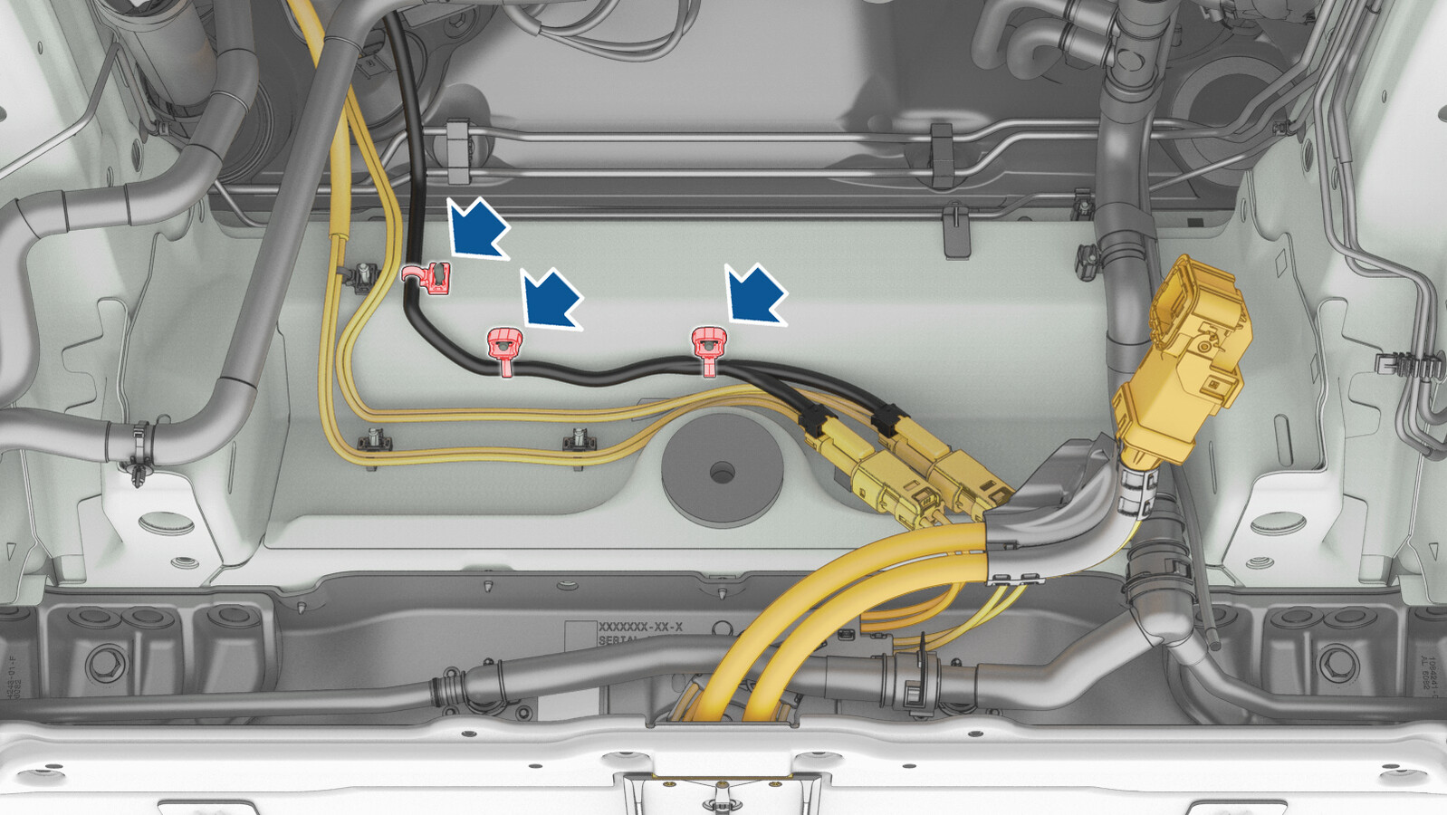 Figure 3. LHD shown, RHD similar - Remove the 12V battery. See 12V/LV Battery (Remove and Replace).