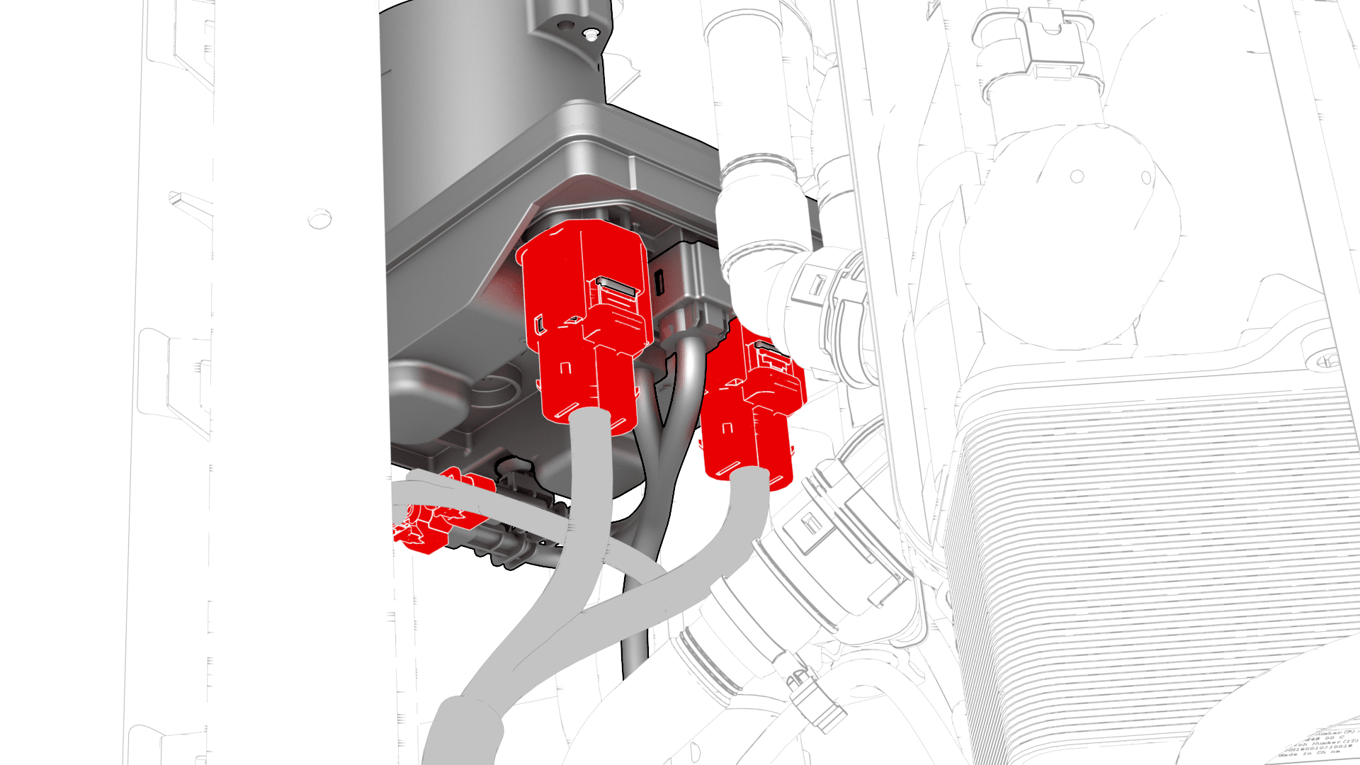 attaches the electrical harness to the chiller-car computer and HV battery