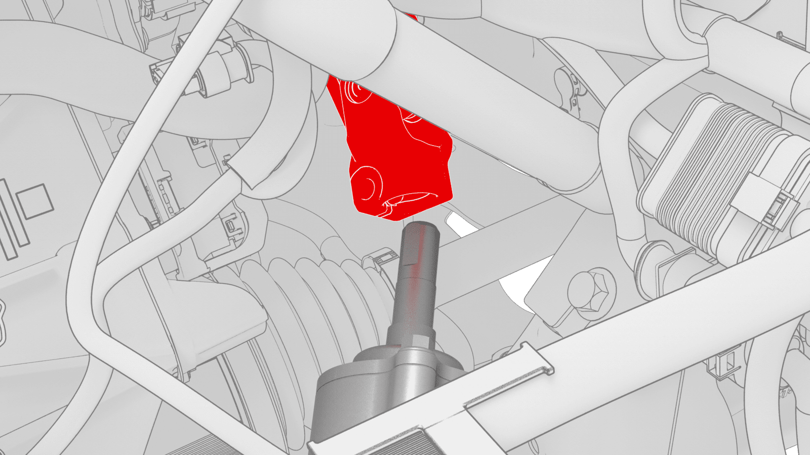 NoteShift the bundle towards the RH front, then remove the brake lines from the steering column area and out between the front subframe cavity.