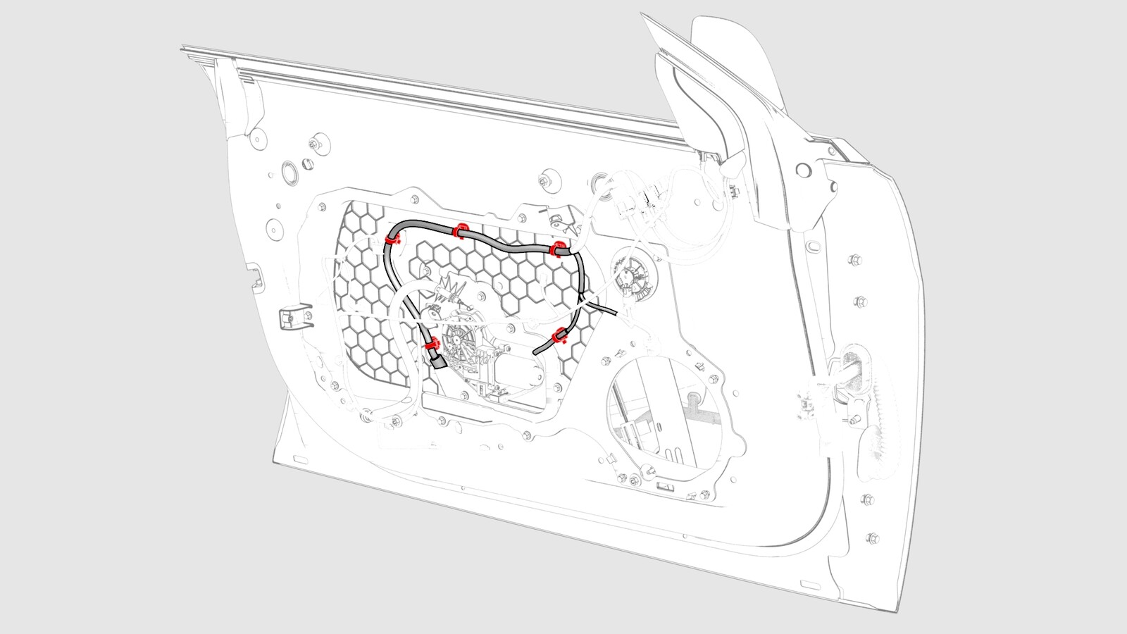 wiring harness from the LH door mirror connectors, and then release the harness brackets