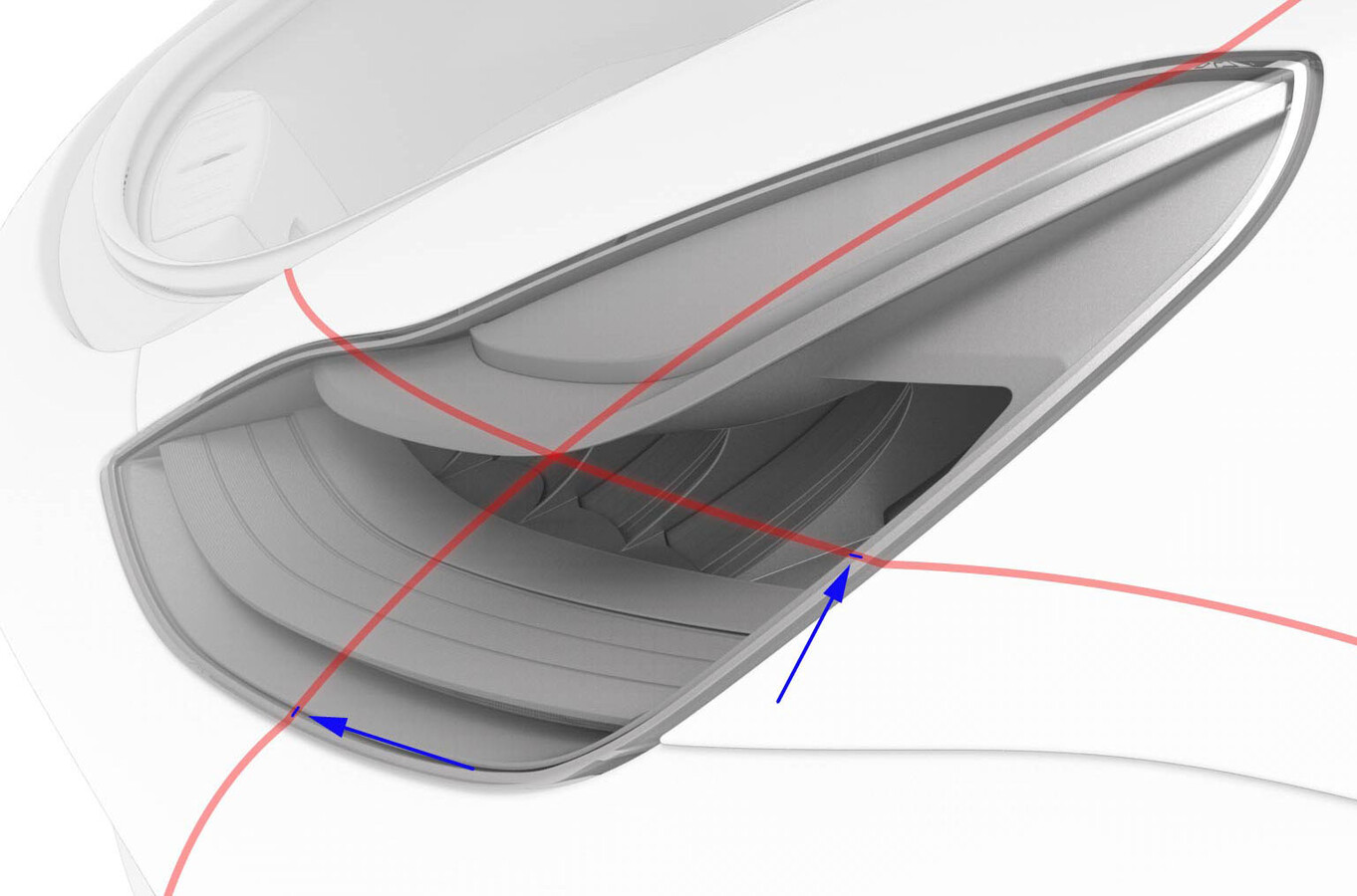 - Measure 14.7 cm from the front corner of the front fender to the bottom edge of the headlight (see image B).