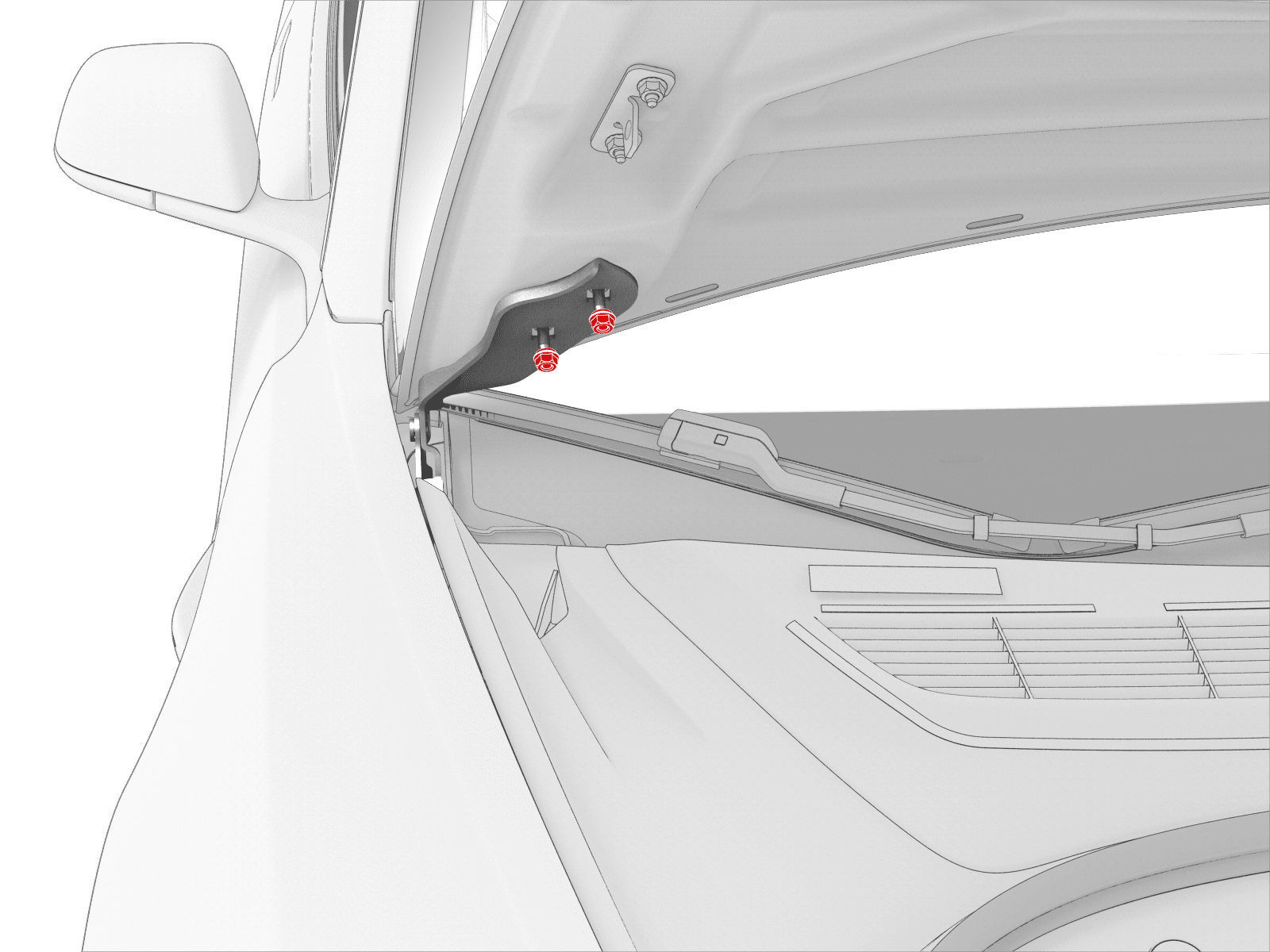 - If necessary, apply touch up paint matching the vehicle's body color to the LH and RH hood hinge studs/nuts.