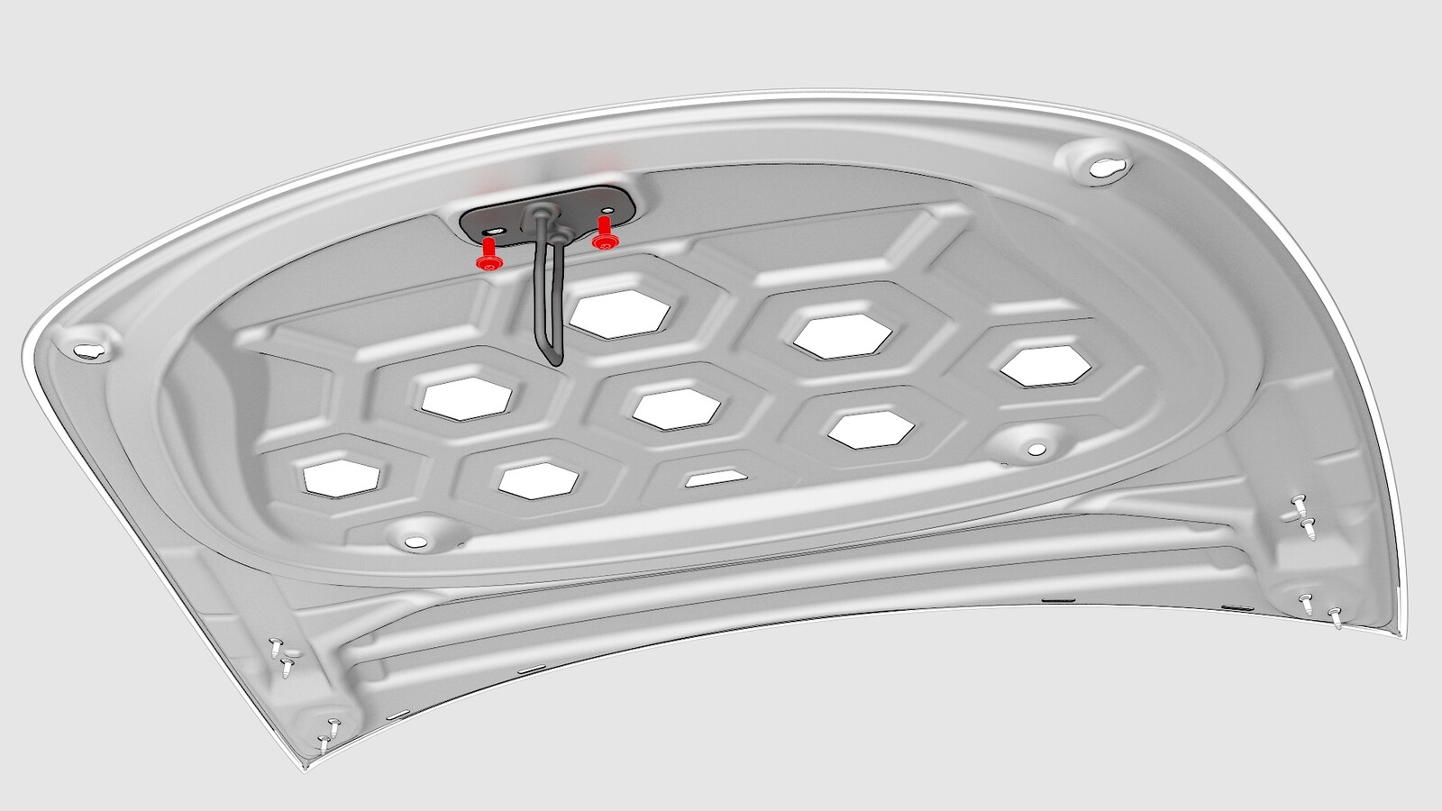 - Position the hood striker on the new hood, and then hand tighten the bolts that attach the striker to the hood.