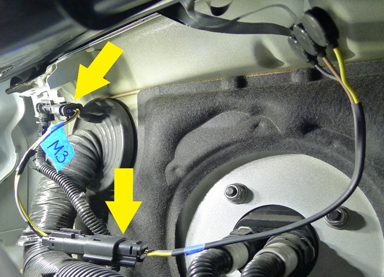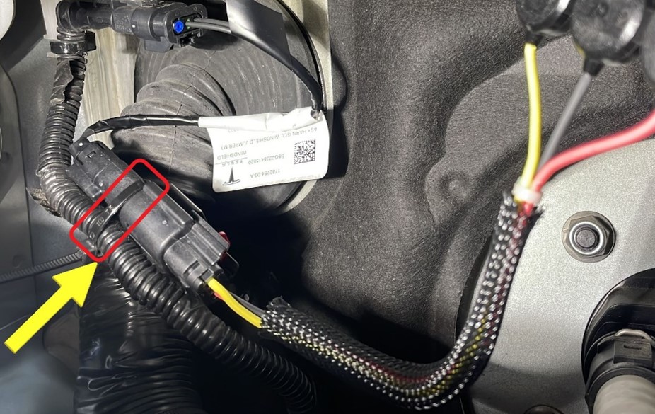 Connect the windshield jumper harness to the windshield heater connector and the main front harness connector.