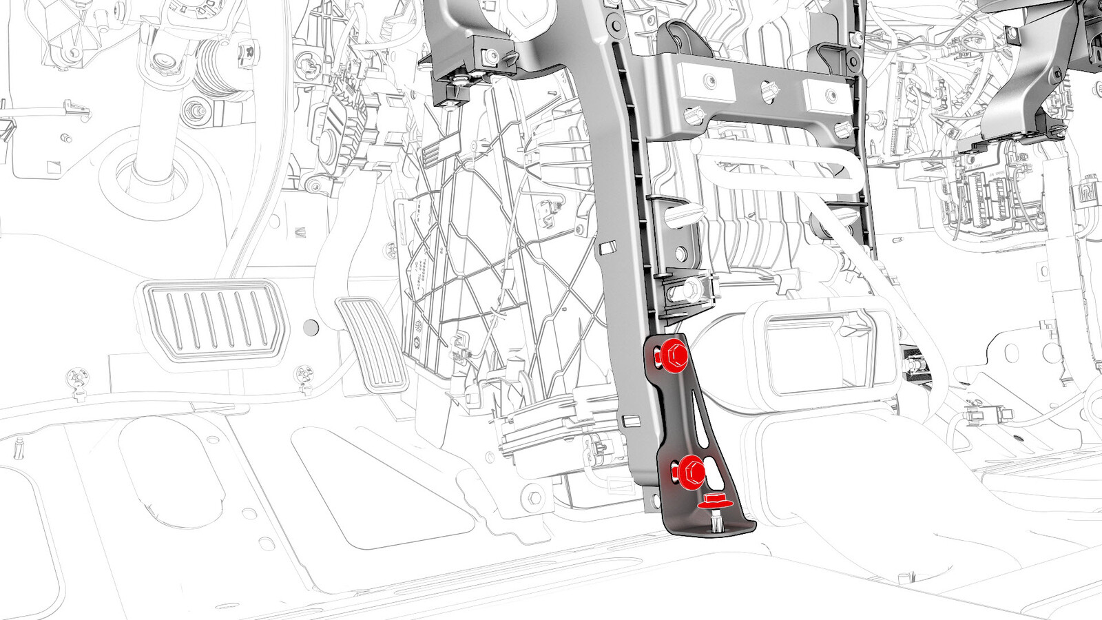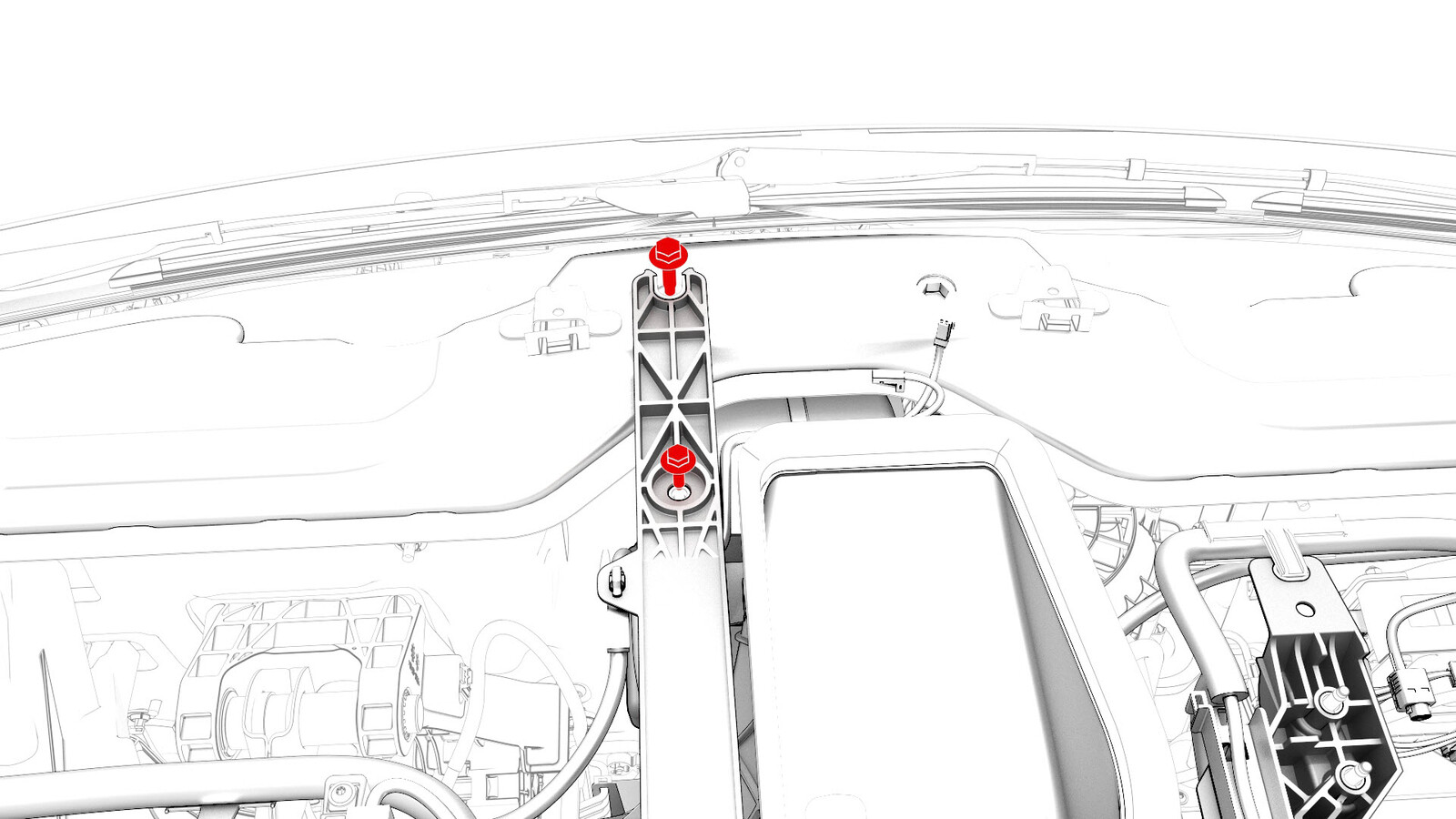 attaches the cross car beam to the upper side of the cowl (torque 25 Nm),