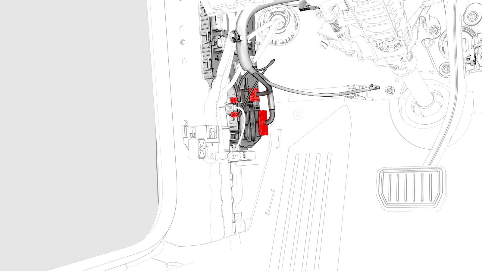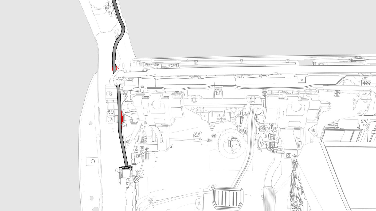 - Disconnect the connectors (x3) from the harness clip at the RH lower A-pillar.