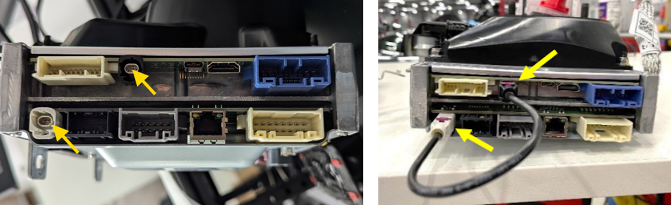 Figure 1. Install jumper cable 1533065-00-A if the RH side of the car computer has 2x coax connections (HW3.2) -