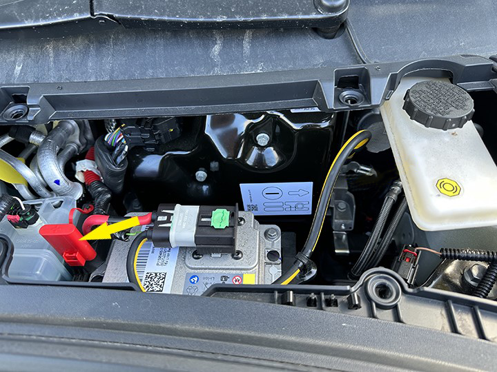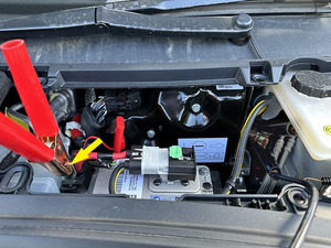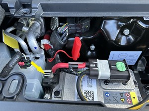 the LV battery, push the black connector lock inwards to secure, and then press the