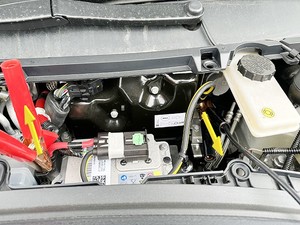 CAUTIONTo avoid damaging the vehicle, DO NOT allow the positive cable to make contact with other metal components.