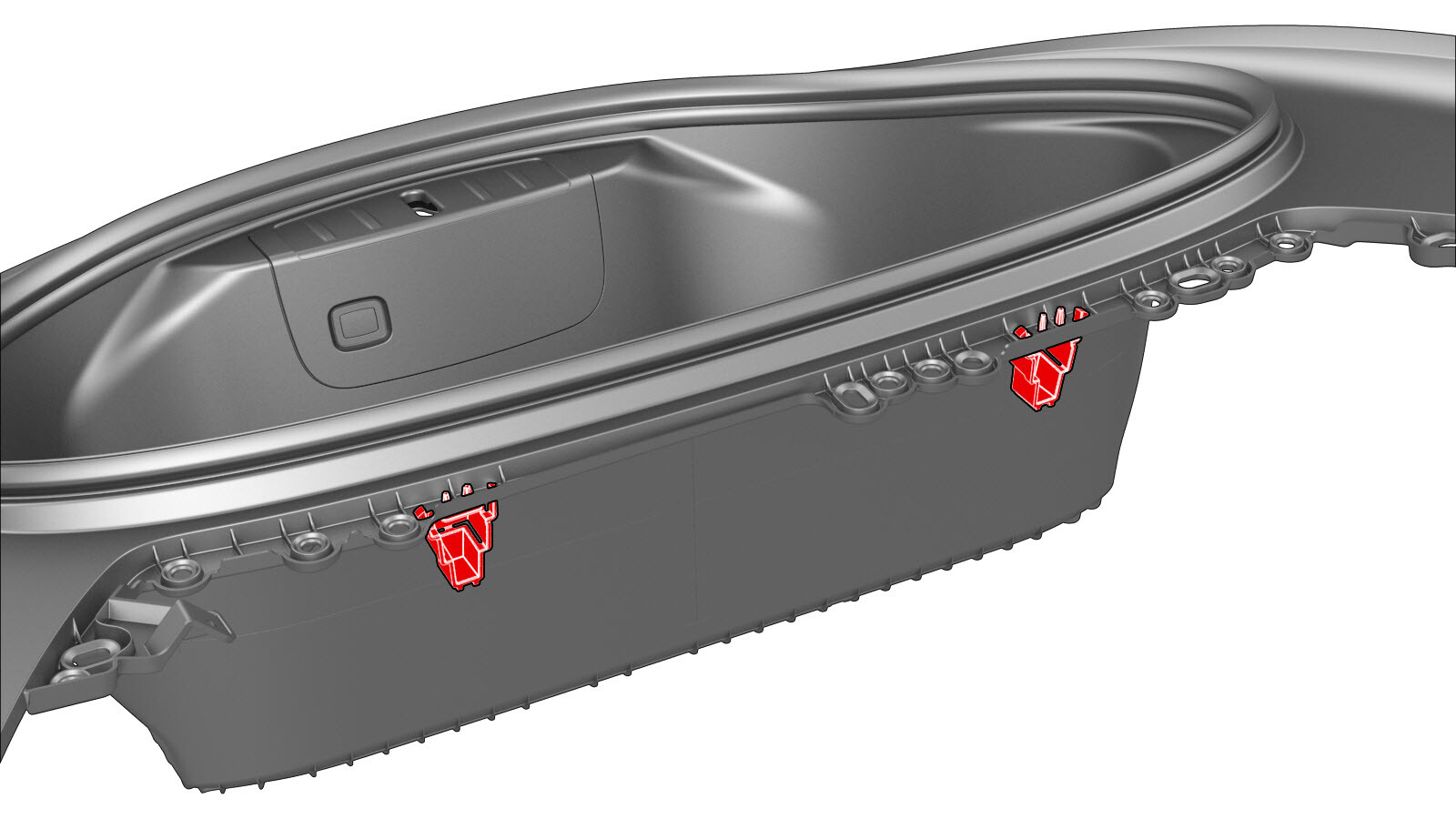 Install the reinforcement clips (x2) to the rear of the underhood storage unit.