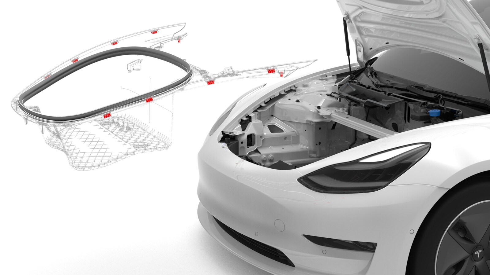 Install the underhood storage unit into the vehicle, and then fasten the clips (x10) that attach the underhood storage unit to the vehicle.