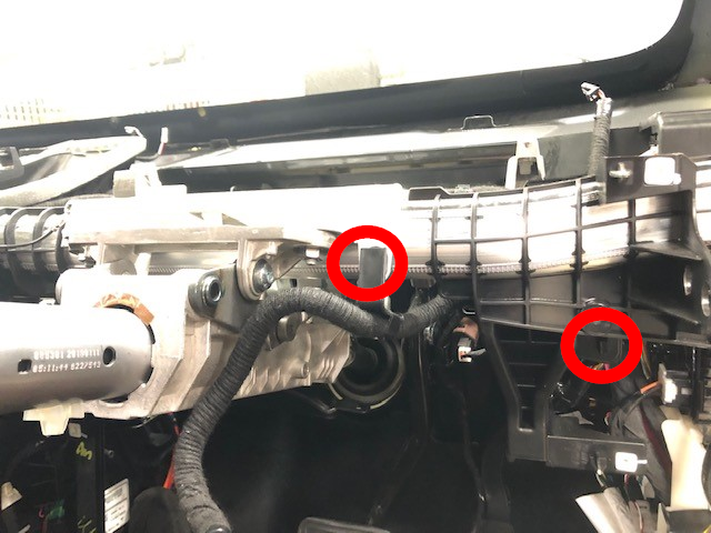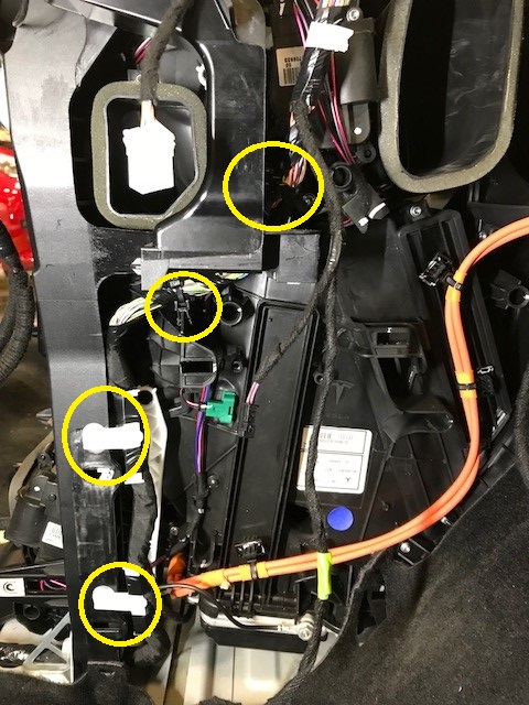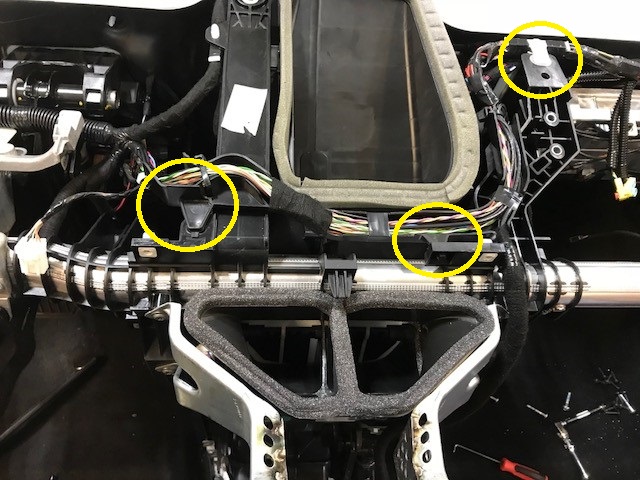 harness clips (x3) and harness holder from the top of the cross car beam,