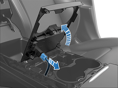 Move up the center console décor trim and disconnect the electrical connector of the wireless phone charger.