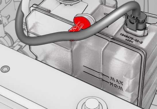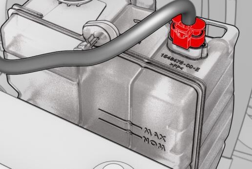 hose, near the coolant bottle.