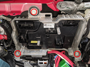 Bolts (x3) that attach the front body controller module to the vehicle |