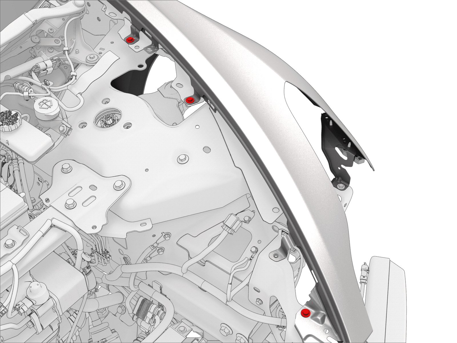 Remove the bolts that attach the upper LH front fender to the vehicle.