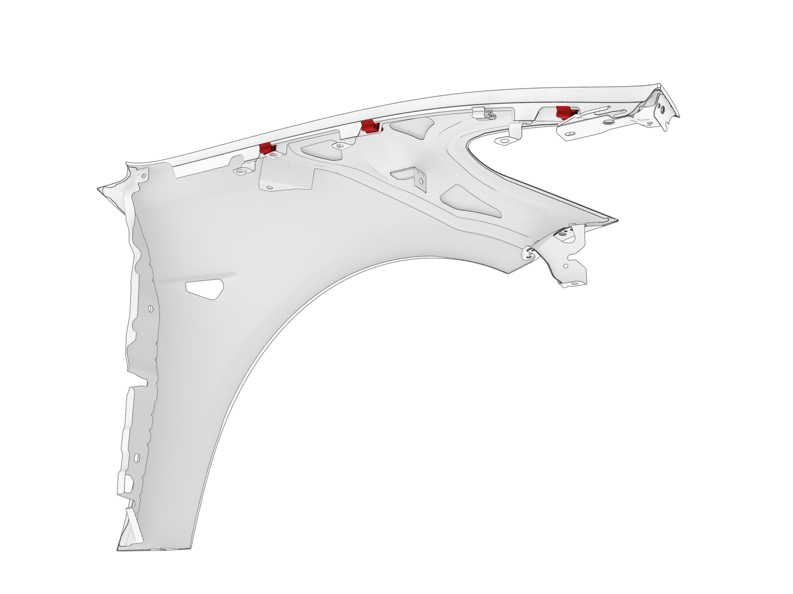 Remove the underhood storage unit clips (3x) from the old LH front fender.