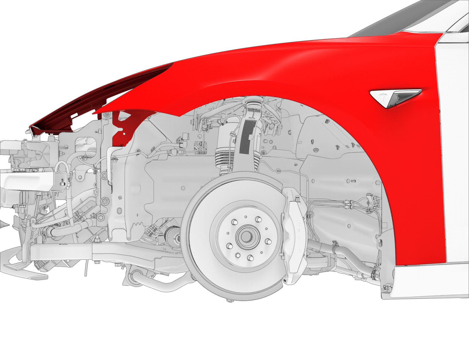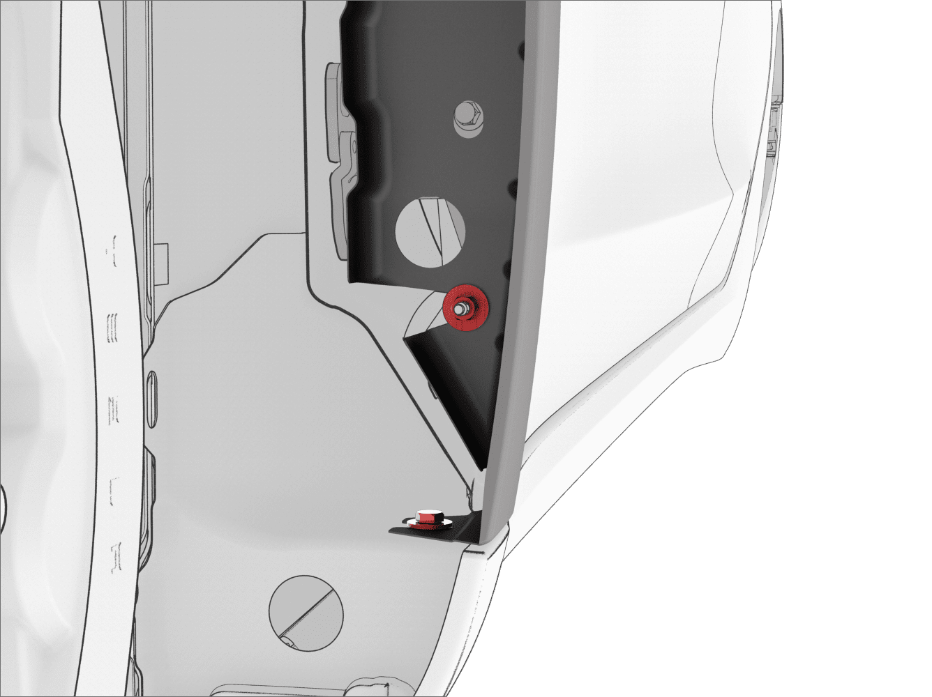 Remove the bolt that attaches the rear LH front fender to the vehicle.