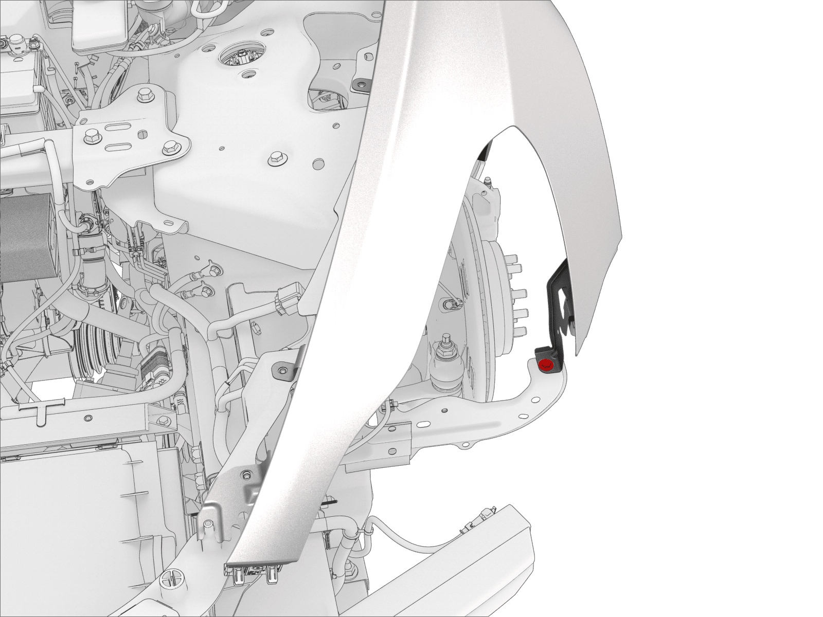 Remove the bolt that attaches the lower LH front fender to the vehicle.