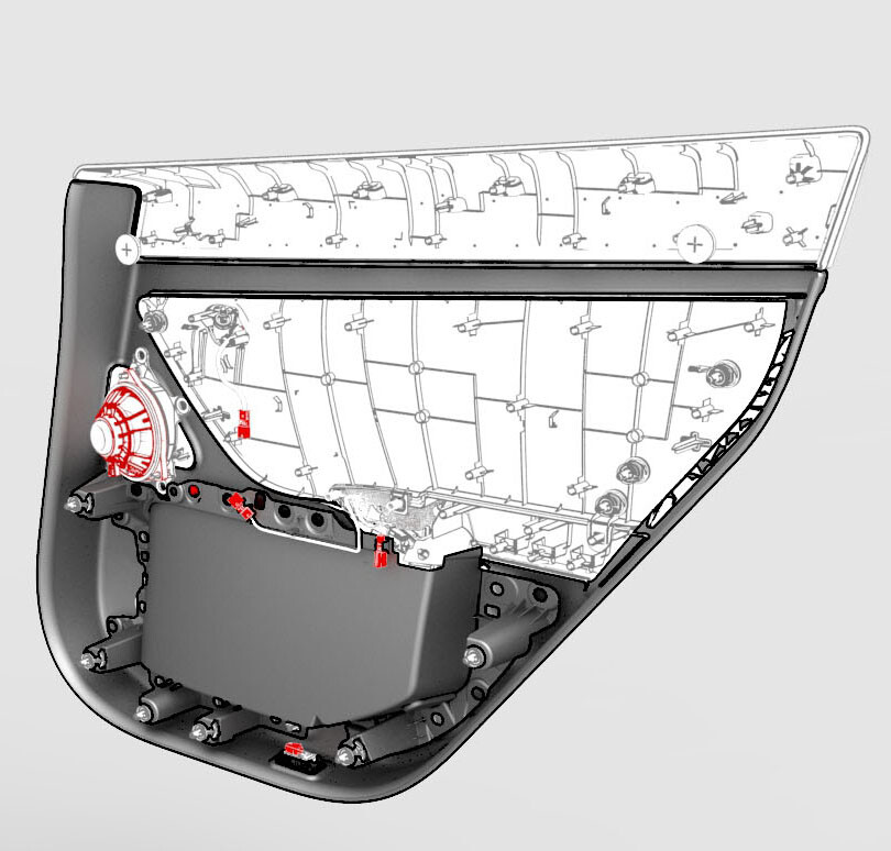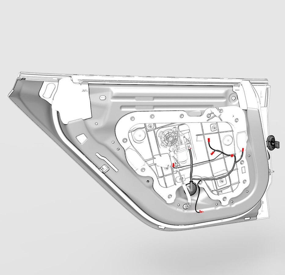 - Connect the electrical harness to the LH rear door trim panel connectors.