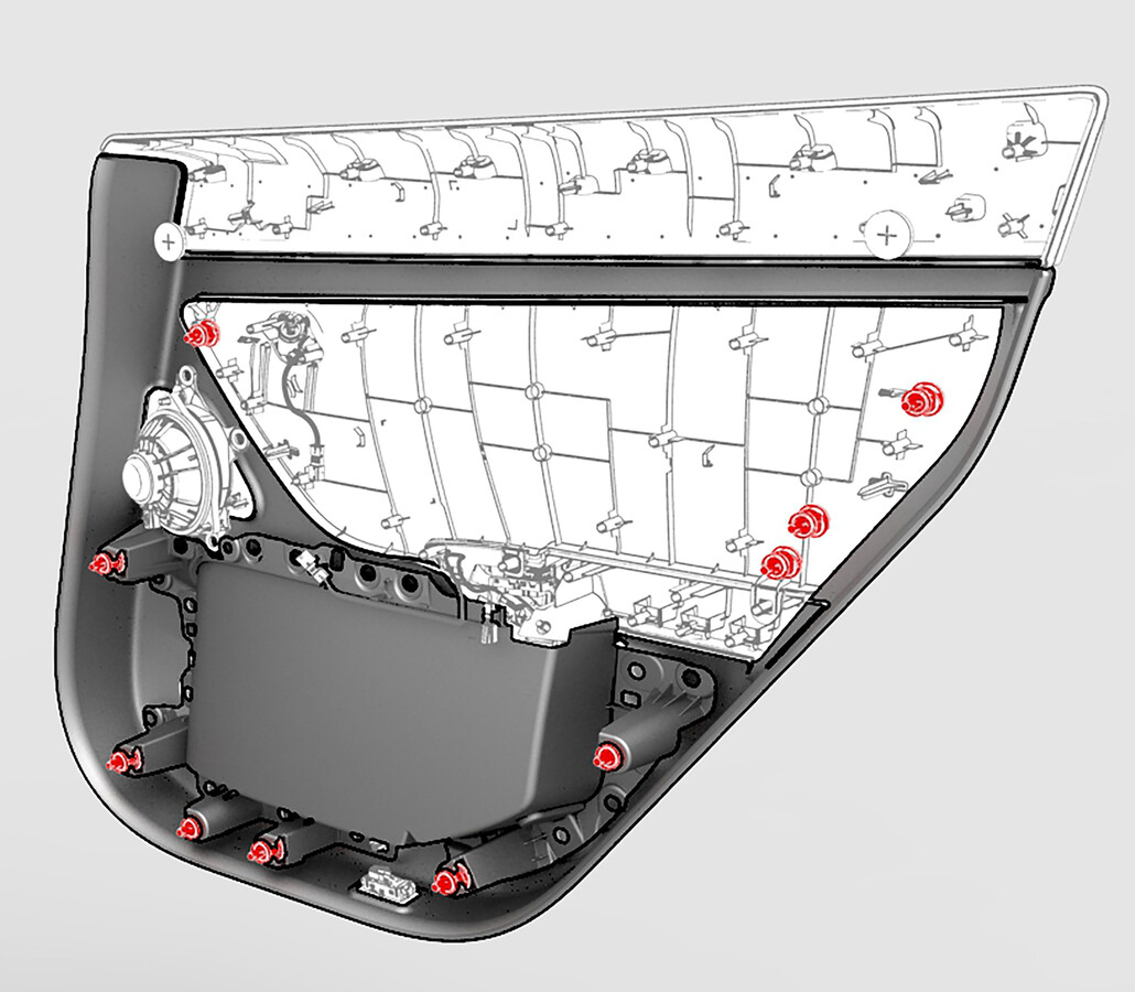 Check the LH rear door for any remaining push clip retainers, and if present, remove them from the door.