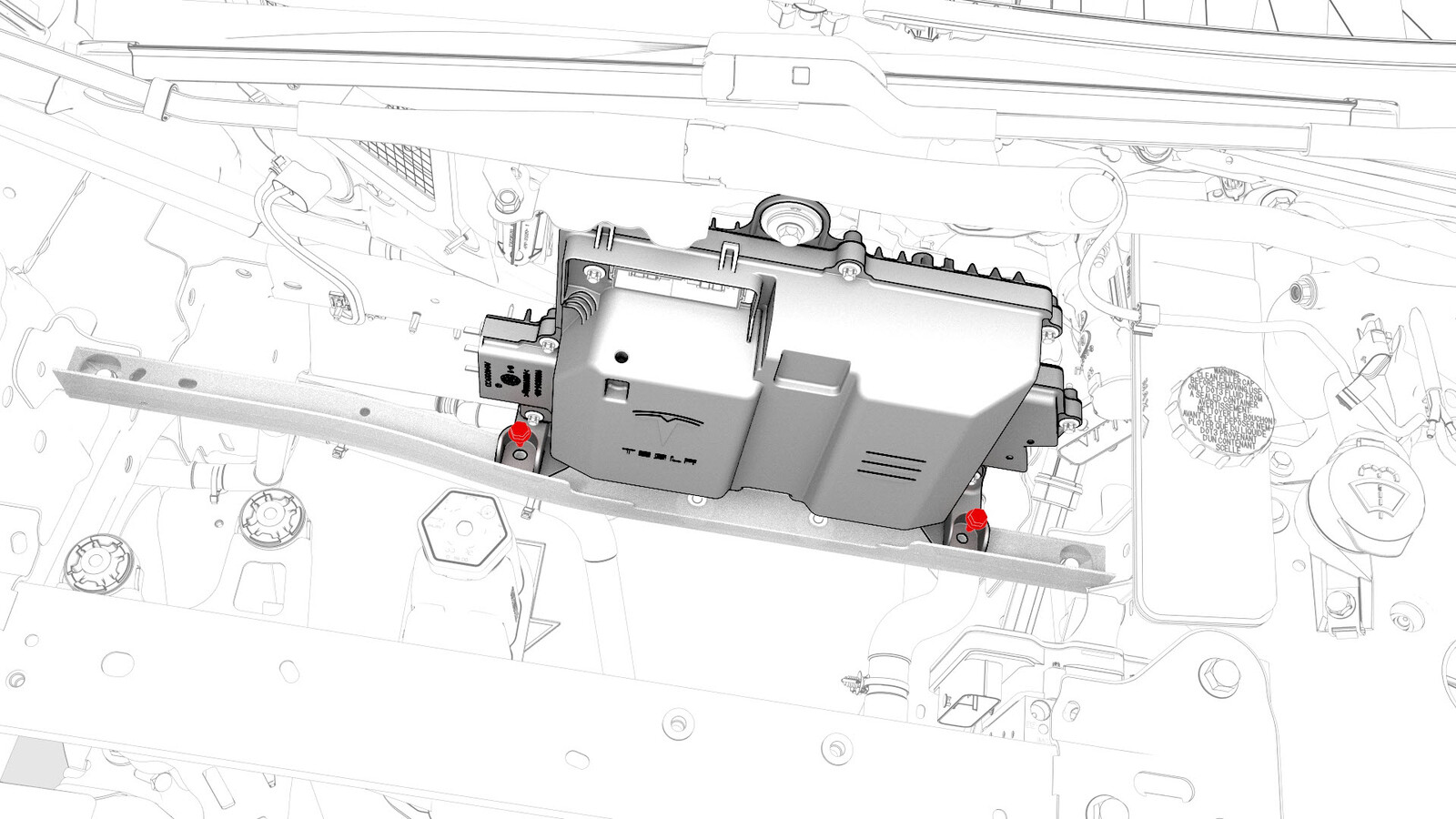 Install the bolts that attach the front controller to the 12V battery bracket beam.10 Nm (7.4 lbs-ft)