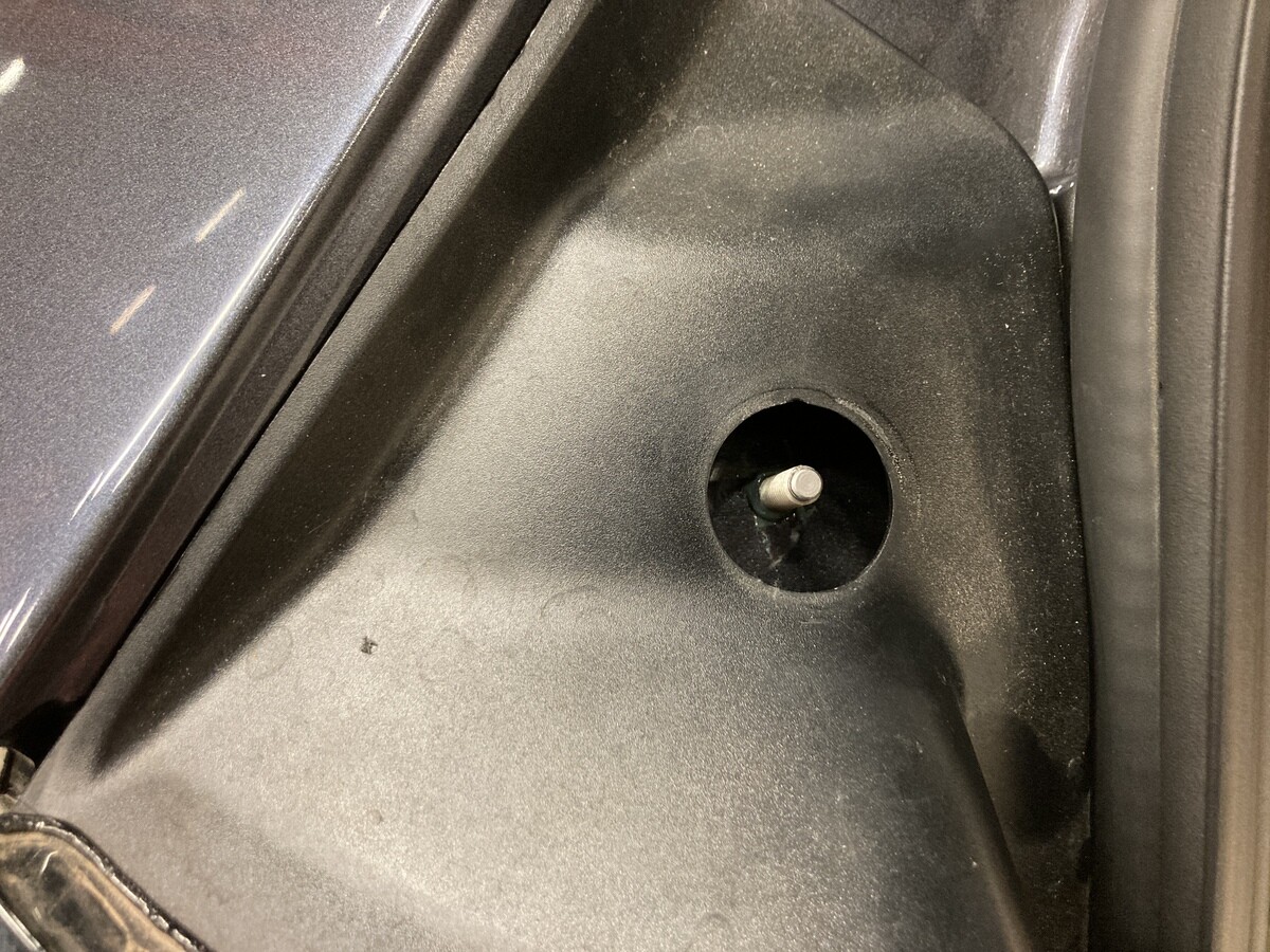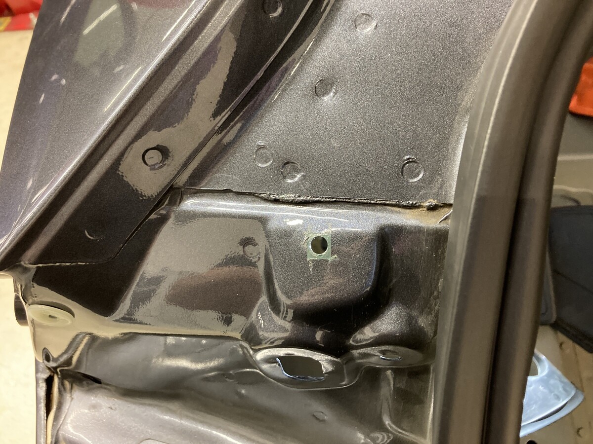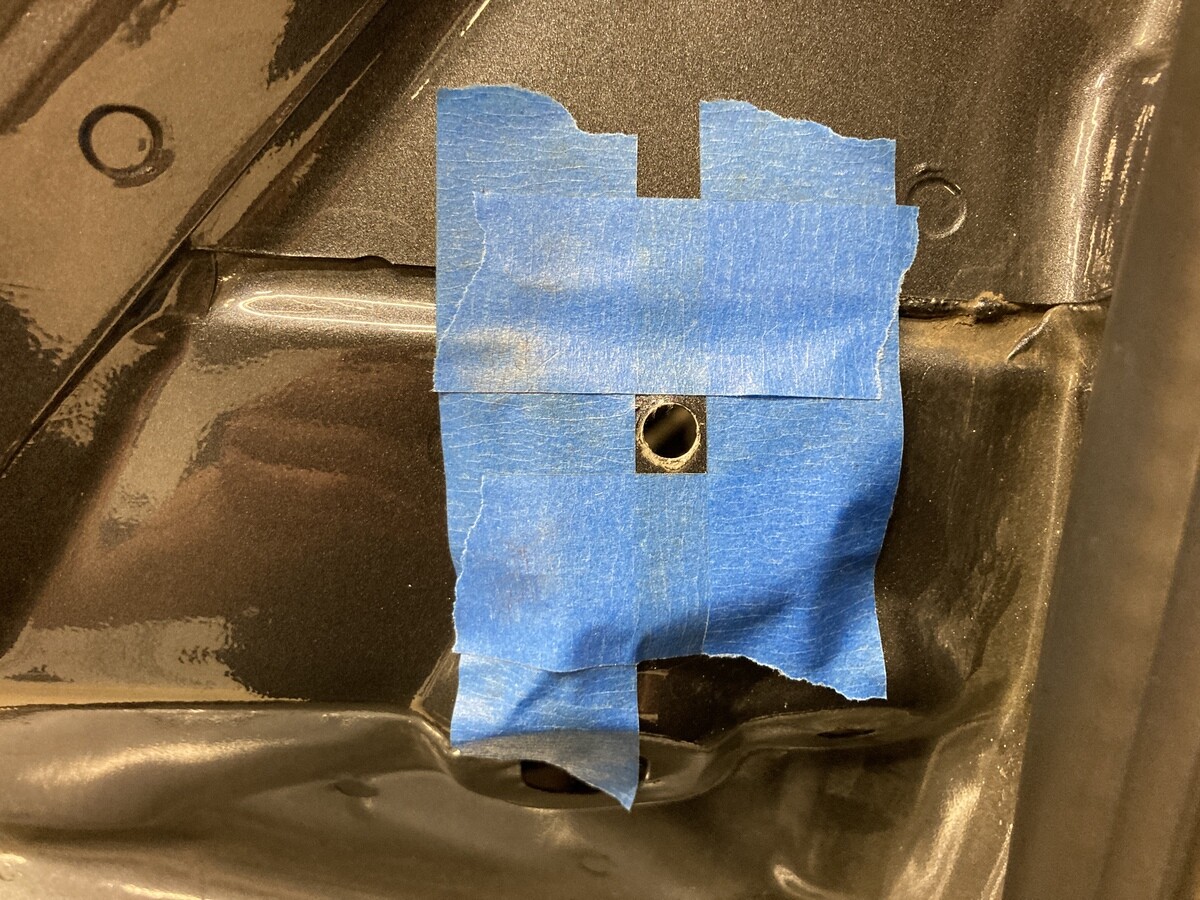 the LH lamp can panel that was created after removal of the liftgate stop stud.