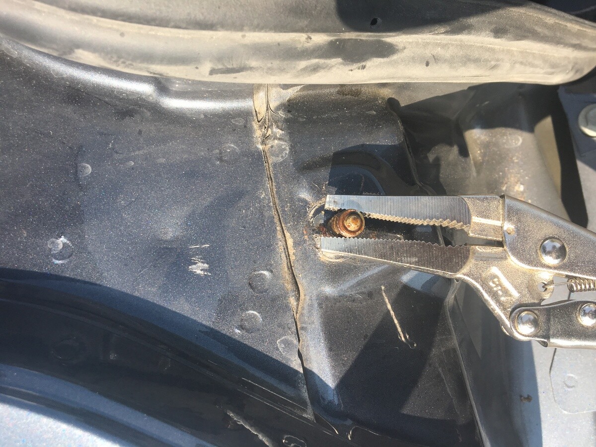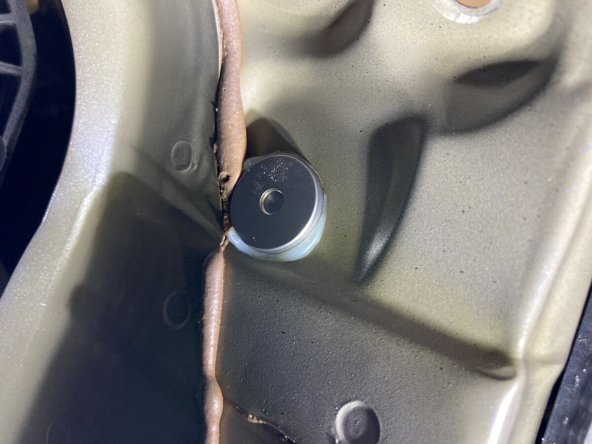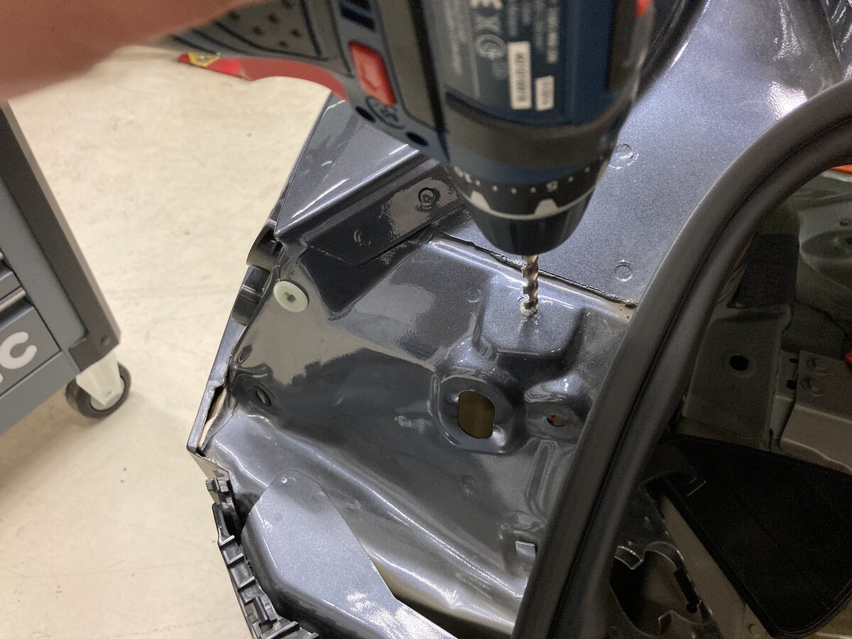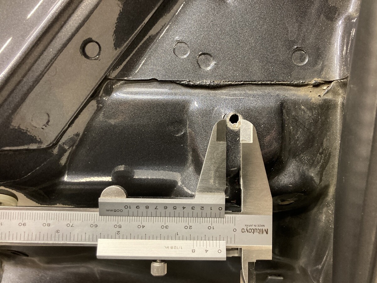 the LH lamp can panel that was created after removal of the liftgate stop stud.