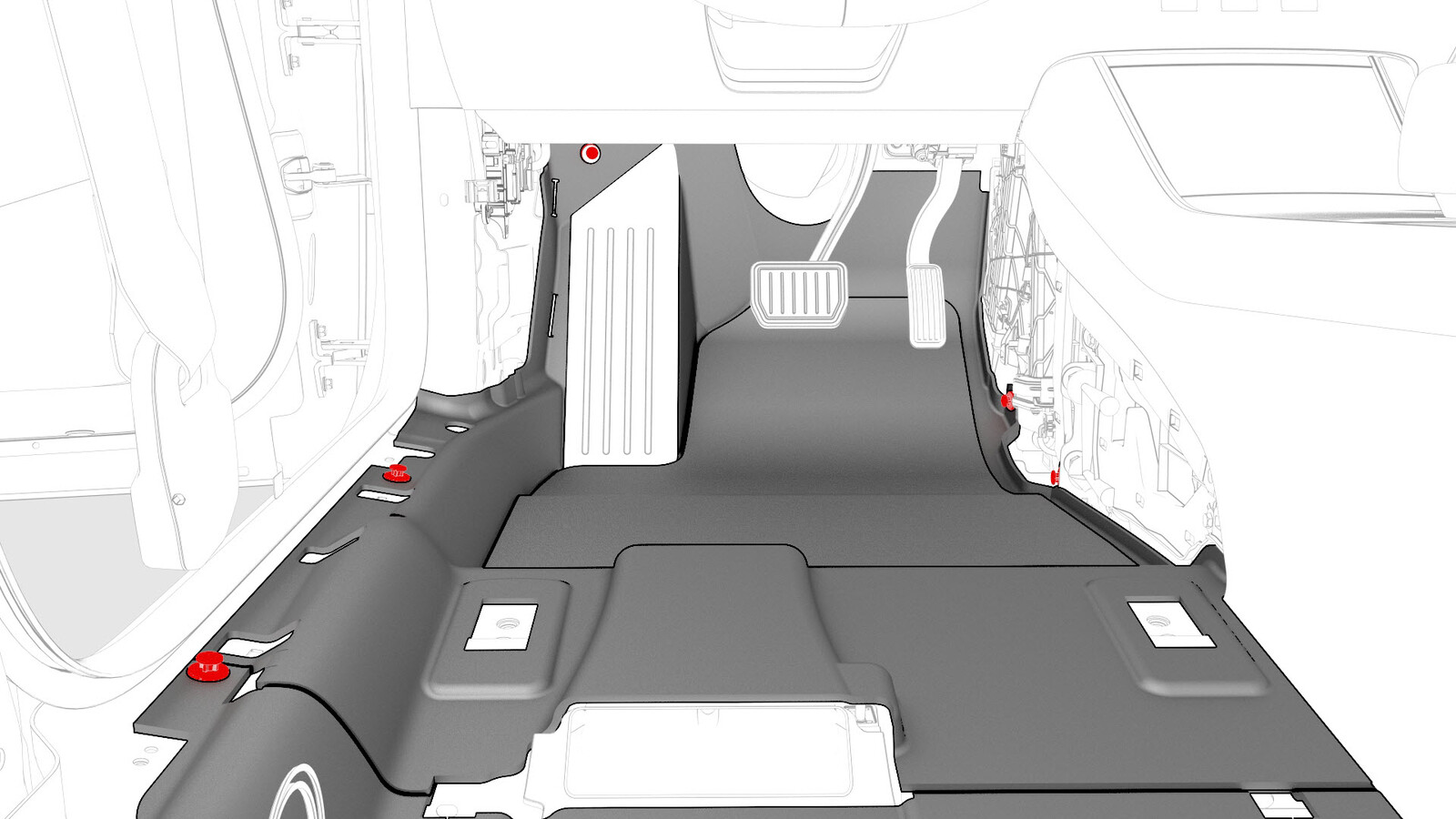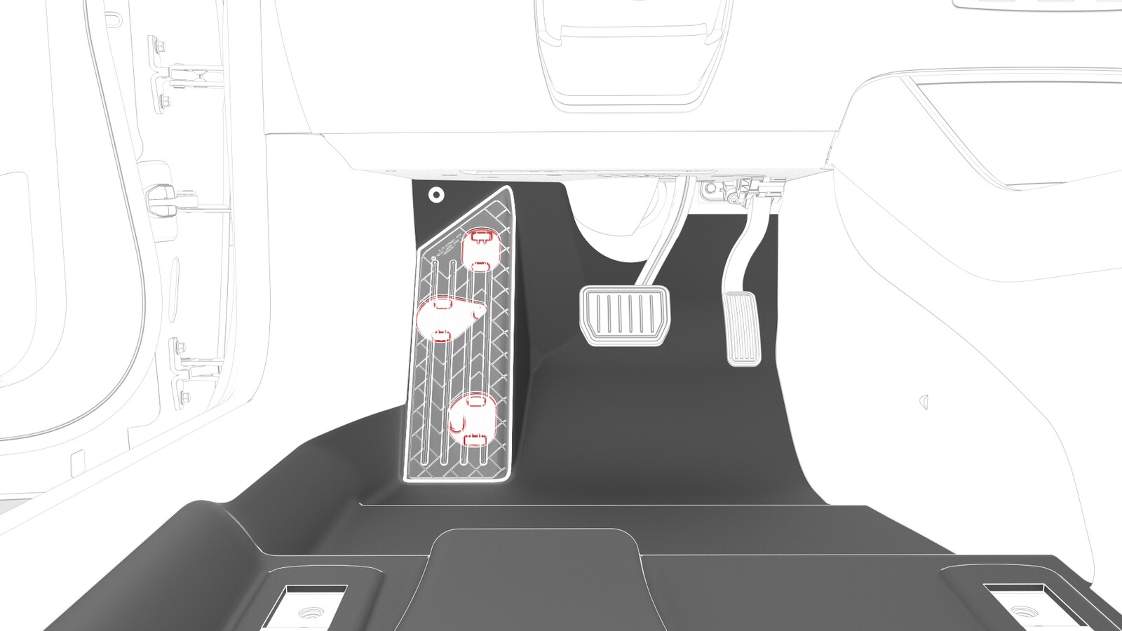 into the vehicle and fasten the clips that attach the driver footrest to the