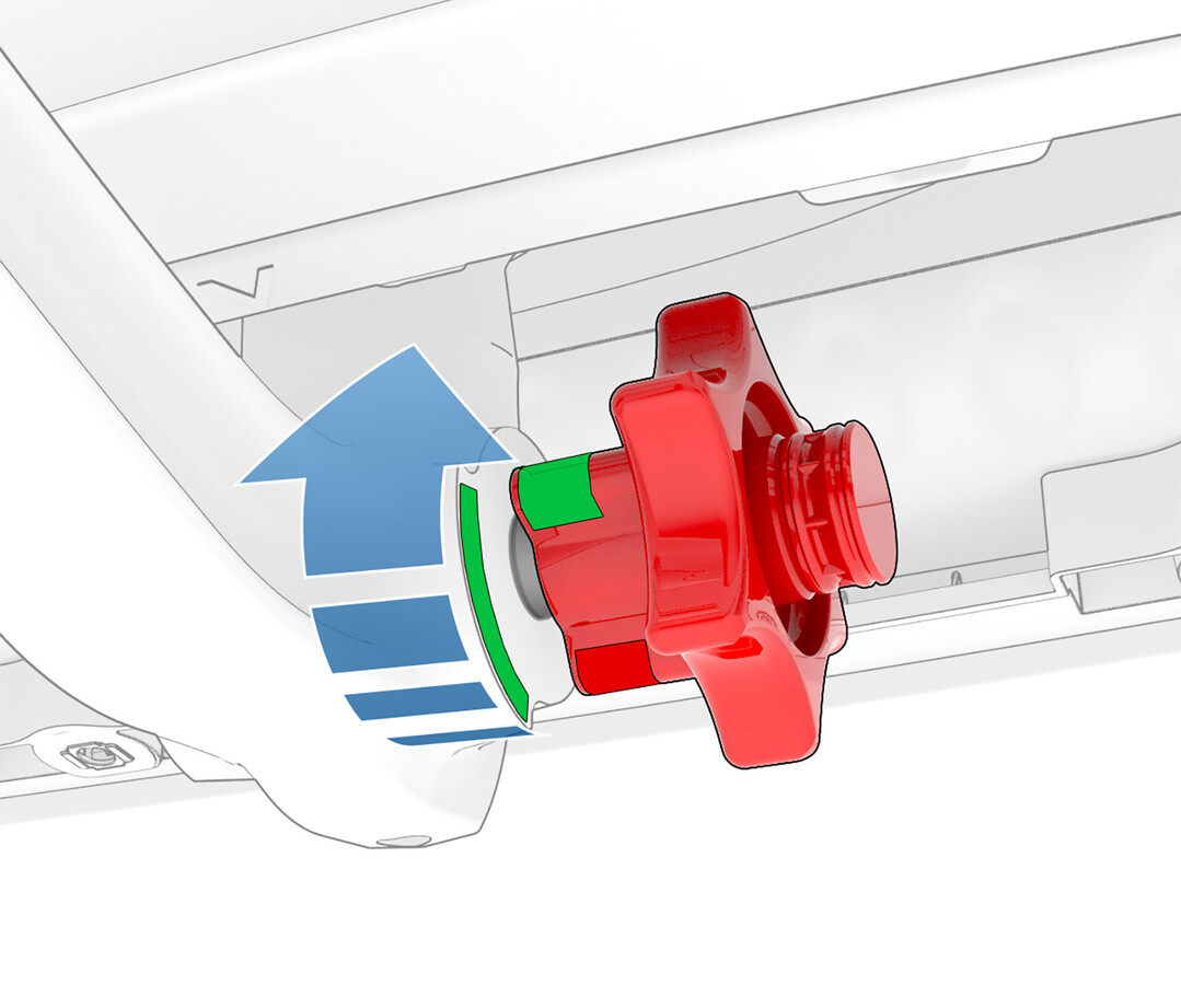 WarningBe careful when turning the locking cylinder. If it does not lock into the "open" position, it automatically retracts into its original "closed" position and can pinch your fingers.
