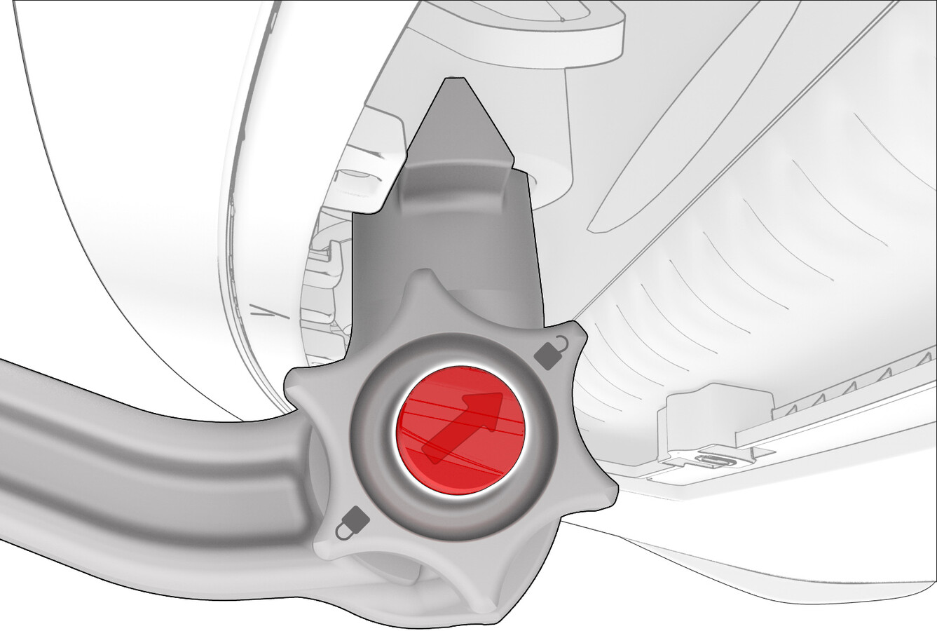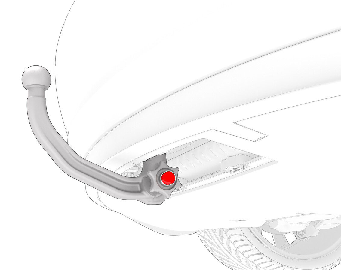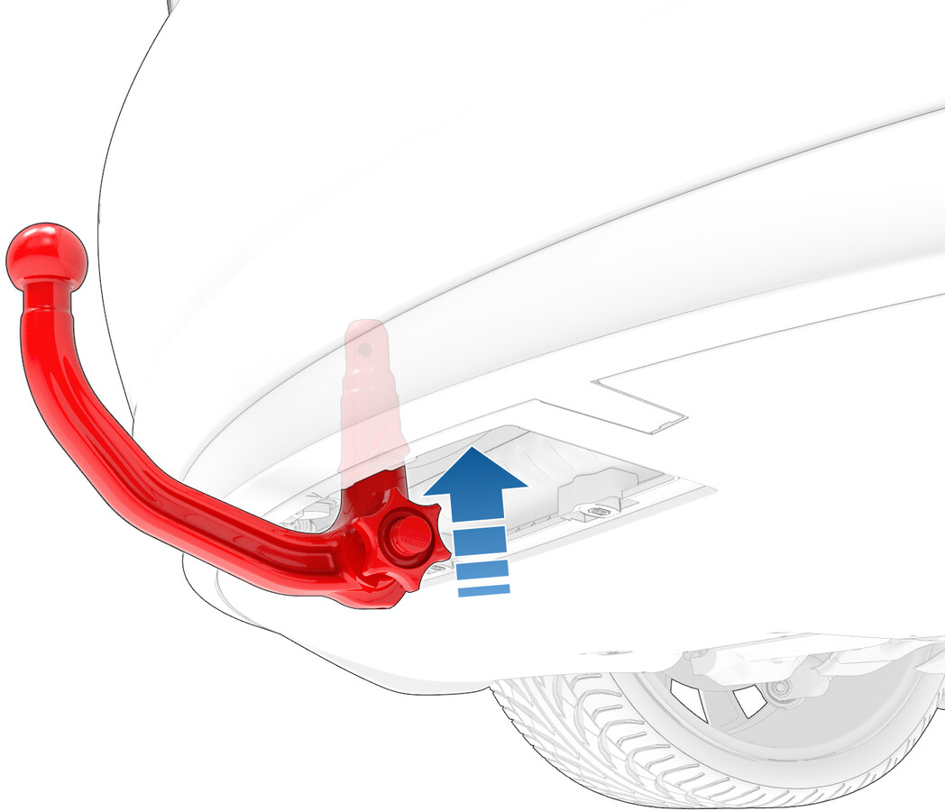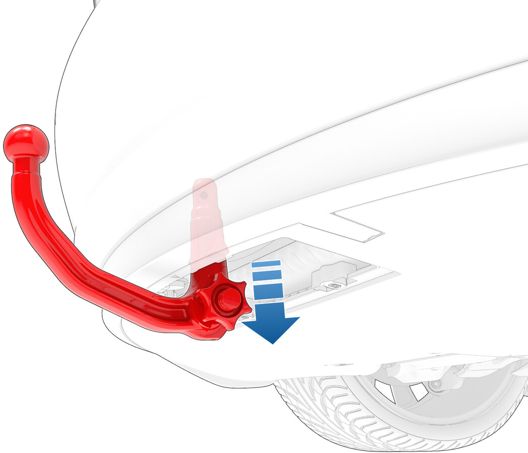 While firmly holding the bottom of the ball neck (to prevent it from dropping to the ground), pull the locking cylinder out approximately 0.5 cm, and turn it clockwise until the Lock icon shifts to the top. At this point, the locking cylinder is unlocked in the "open" position and the ball neck drops out of the trailer hitch housing.