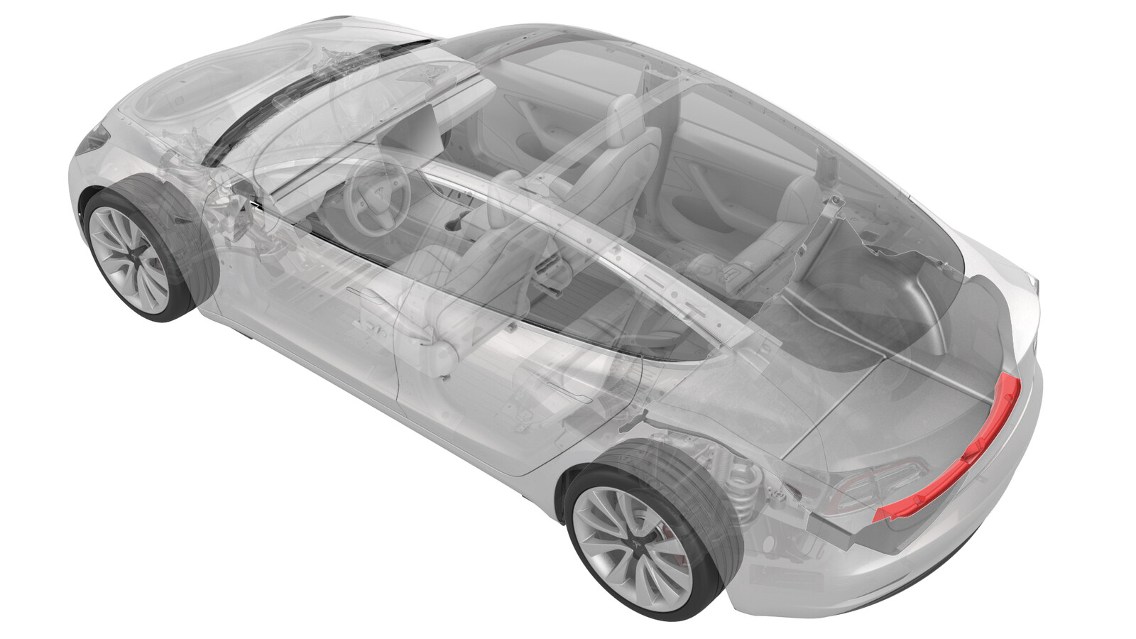 the slot in the trunk sill trim, align the long tabs (x2) with the slots on