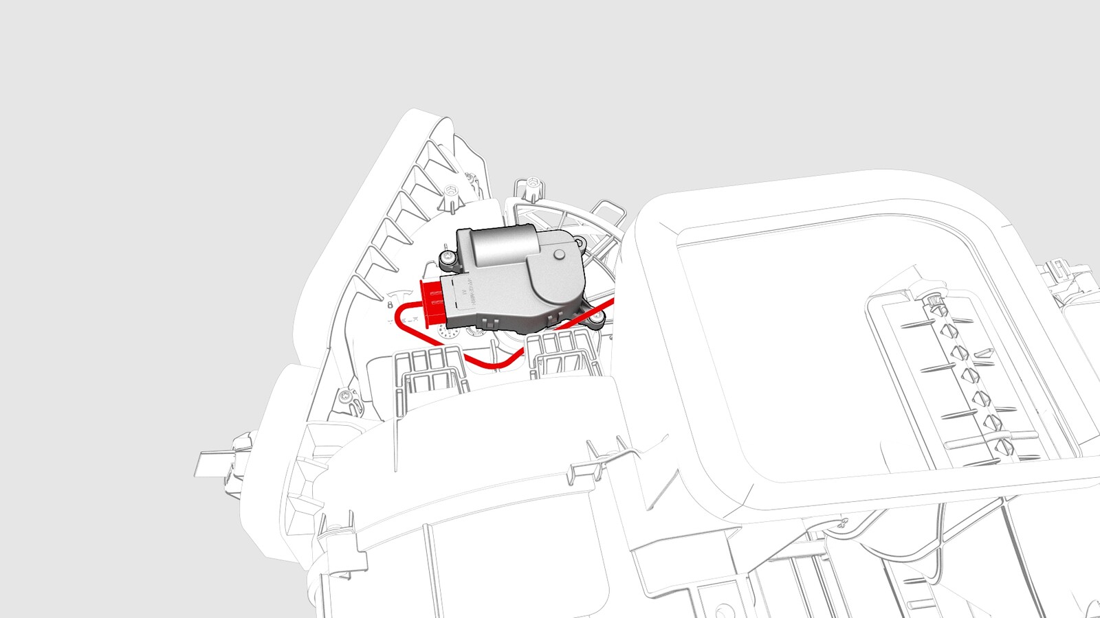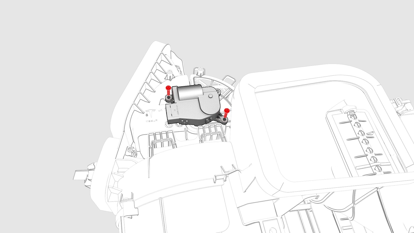 Remove the screws (x2) that attach the intake actuator to the HVAC module, and then remove the actuator from the HVAC module.1.2 Nm (.9 lbs-ft)