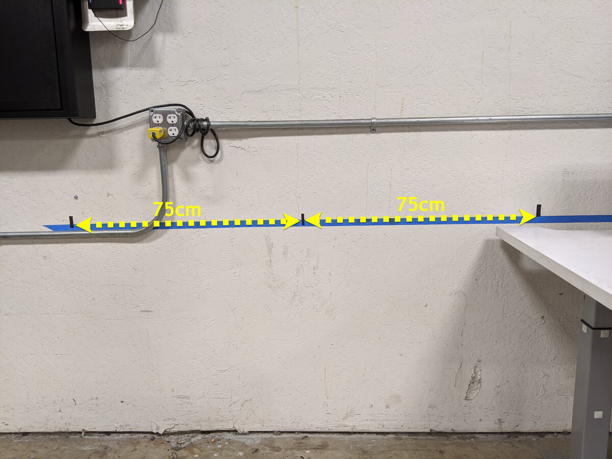 Put tape on the wall 75 cm (29.5 in) to the left and to
